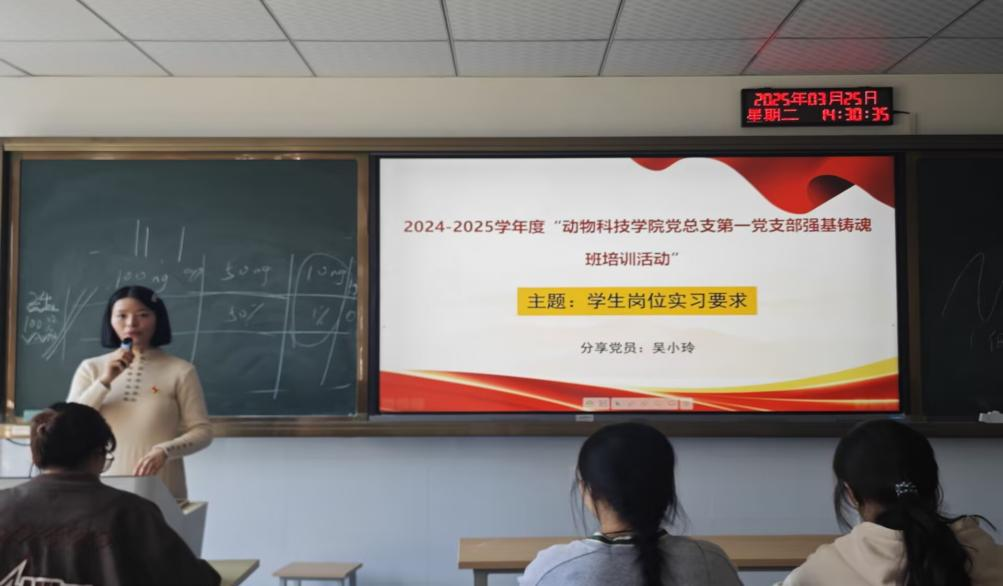 为助力班级成员成长,提升大家对专业实践与个人发展的认知,动物科技学院第一党支部强基铸魂班于3月25日下午2:30在动科楼509教室召开了一场干货满满的培训交流会。强基铸魂班的同学们积极参与,现场气氛热烈。