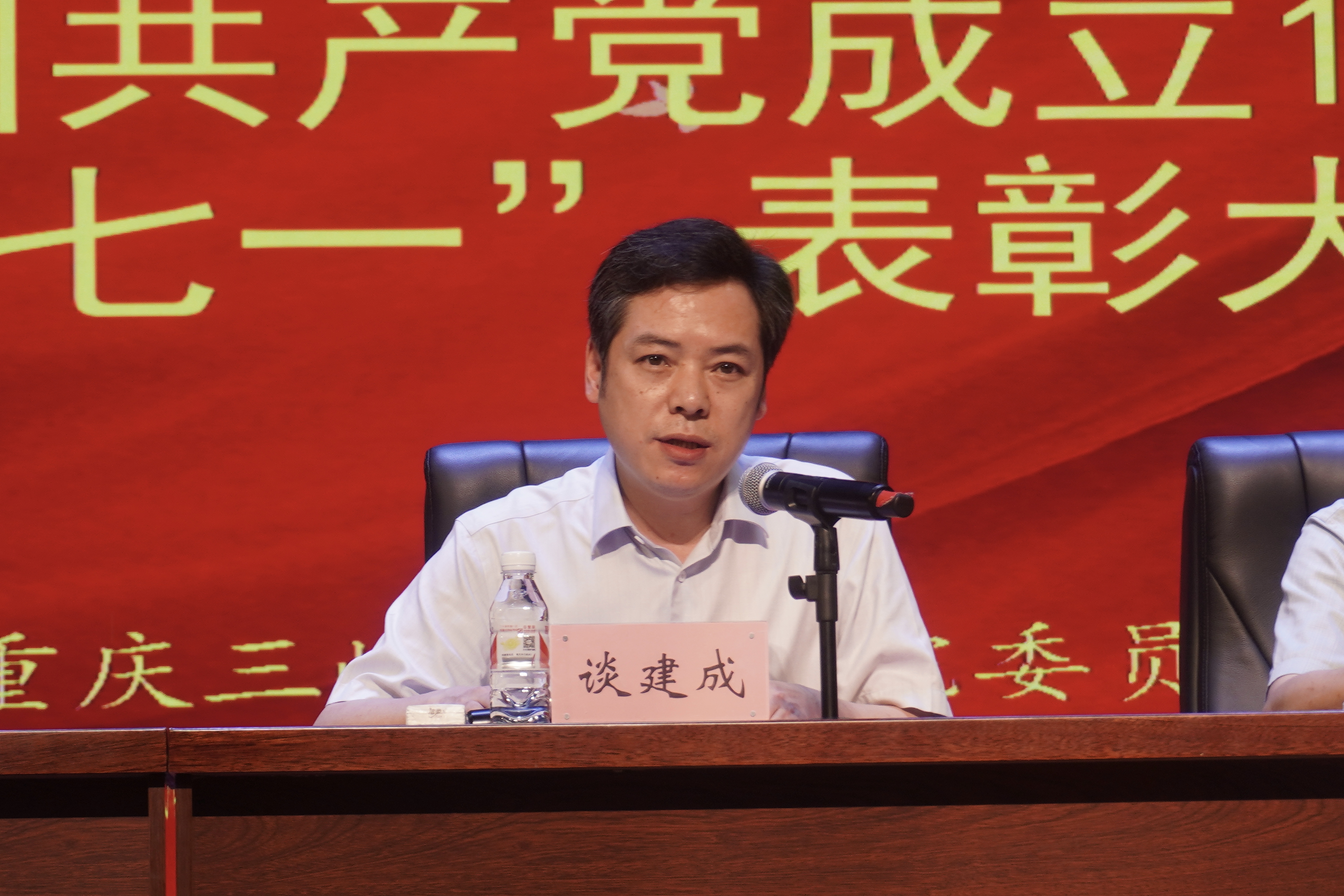 谈建成同志表示,21年来,三峡职院人栉风沐雨、砥砺前行,一大批共产党员和全校师生员工顽强拼搏、无私奉献,推动学校事业发展取得令人瞩目的成就,让我们备受鼓舞,值得为他们点赞。希望今天受到表彰的先进集体和先进个人不忘初心,接续奋斗,以实际行动彰显党员的先进性和模范带头作用。他提出要借助九个“高水平”具体任务,实现以党建统领高质量发展为抓手,努力建设市域党建示范高校;以“双高”建设为抓手,努力建成国家级“双高”学校;以新校区建设为抓手,努力改善办学条件;以关键办学能力提升为抓手,努力建成中国特色高水平农林科技职业大学等重点任务和目标。