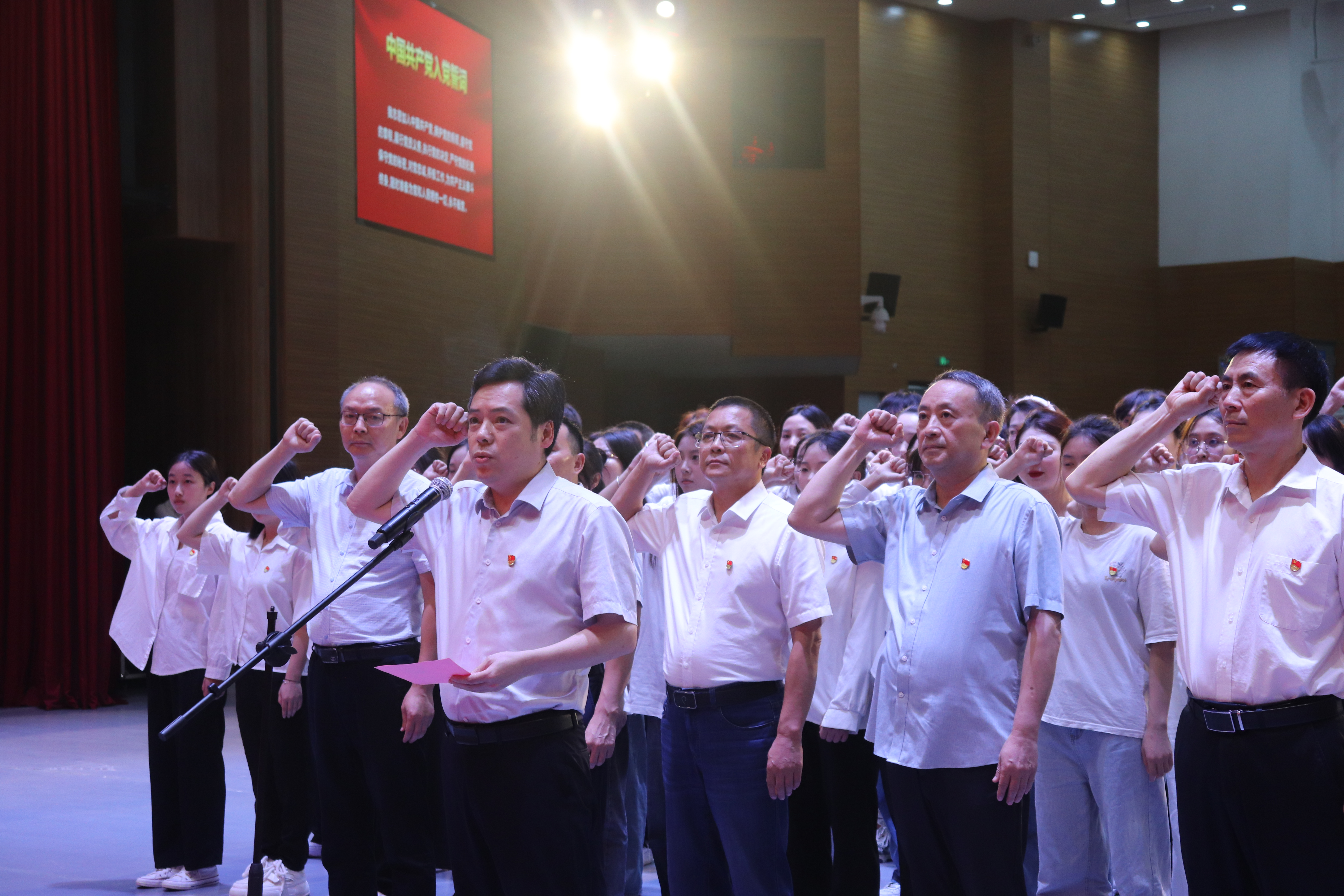 在雄壮的国歌声中,大会拉开帷幕。党委书记谈建成同志带领新党员入党宣誓、老党员重温誓词,并为“光荣在党50年”老党员颁发纪念章。