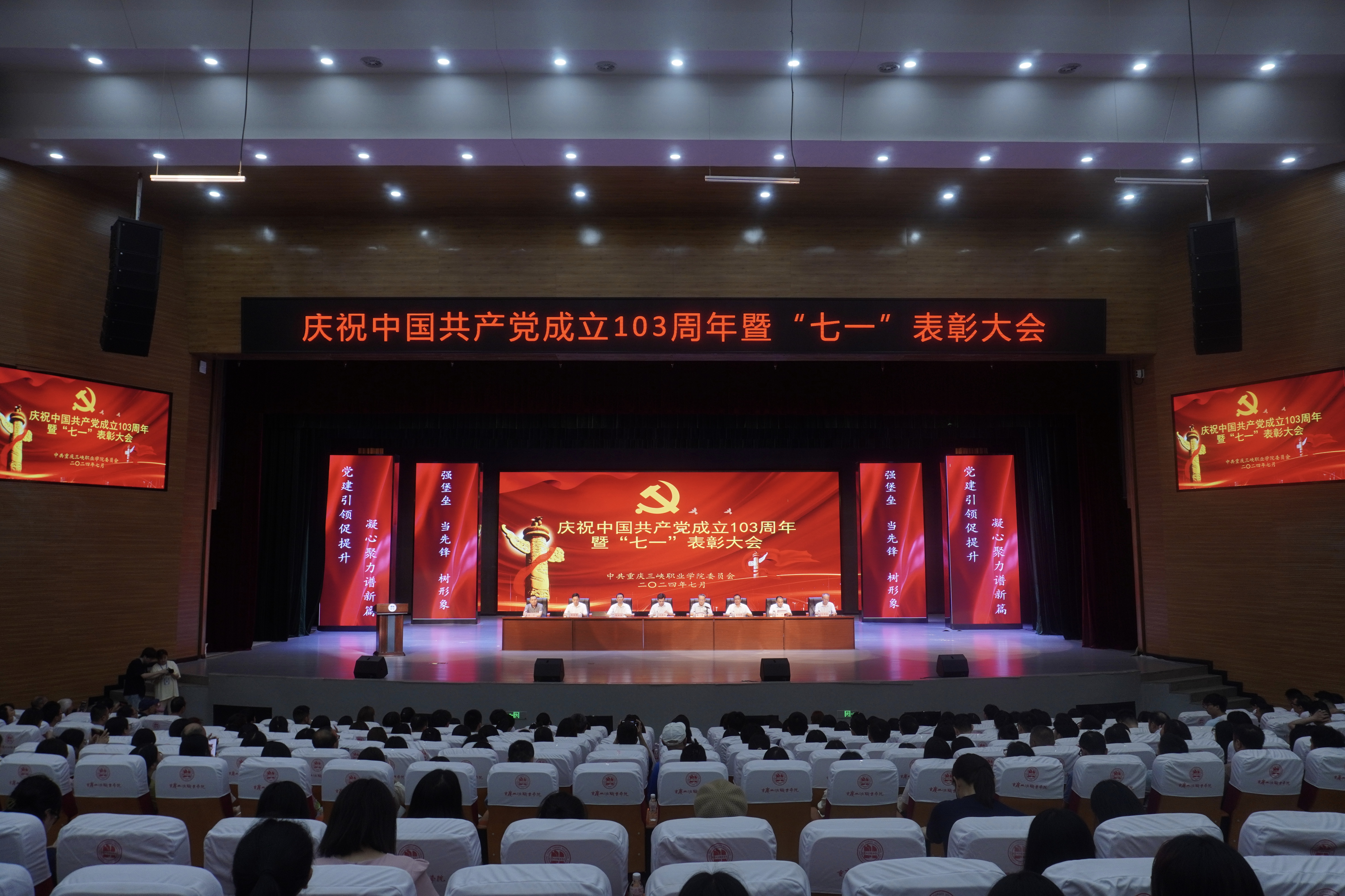 7月1日,学院党委在学生活动中心举行庆祝中国共产党成立103周年暨“七一”表彰大会。学院领导班子成员、党委委员,2024年“光荣在党50年”纪念章获得者,“两优一先”受表彰对象,2024年上半年新发展党员和全体教师党员参加会议。会议由党委副书记张智同志主持。