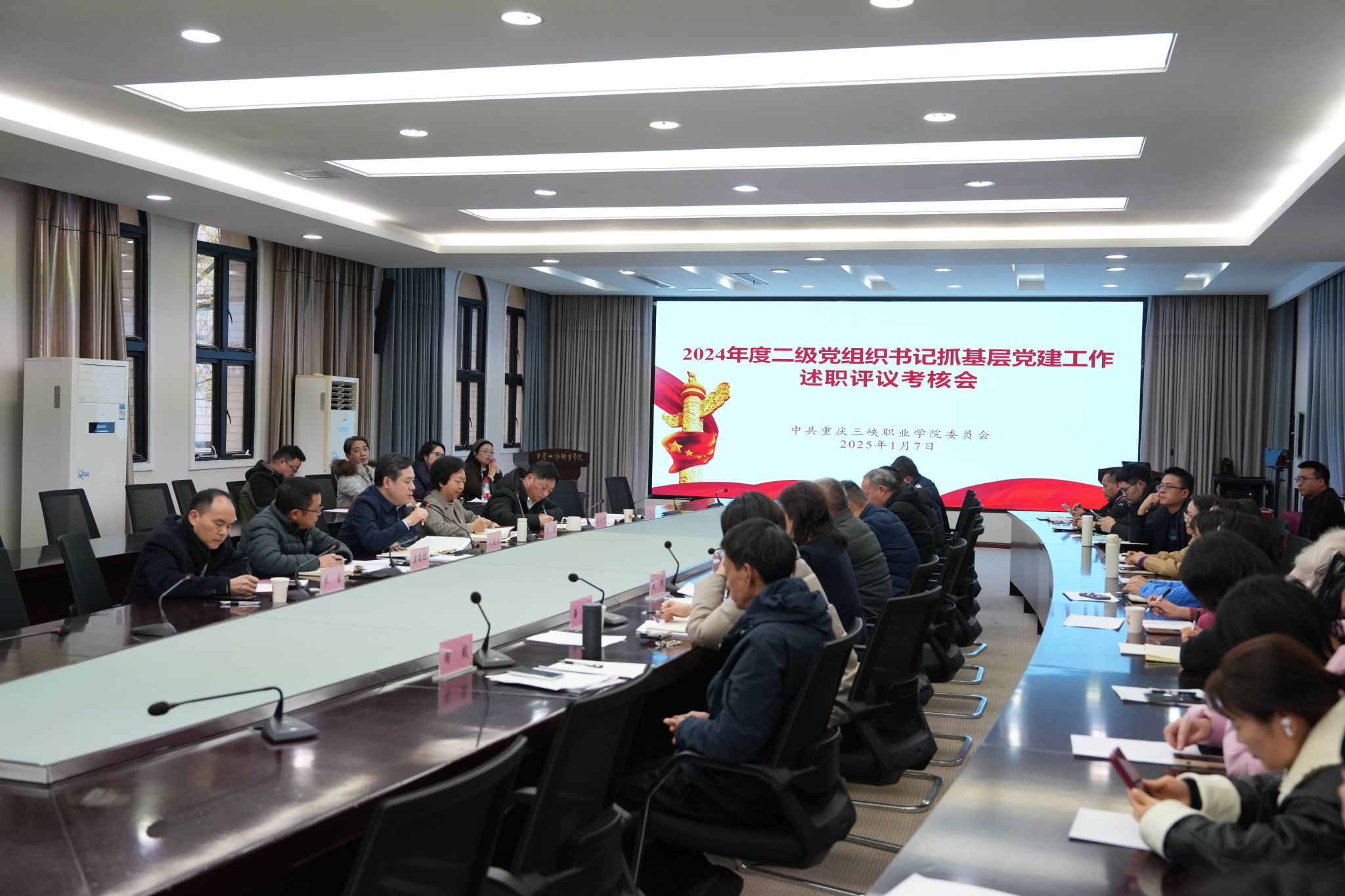 2025年1月7日下午,学院党委召开2024年度二级党组织书记抓基层党建工作述职评议会。学院党委领导班子成员出席会议,各二级党组织书记、副书记,各党支部书记及二级学院专职组织员等参会。会议由学院党委副书记杨梅主持。