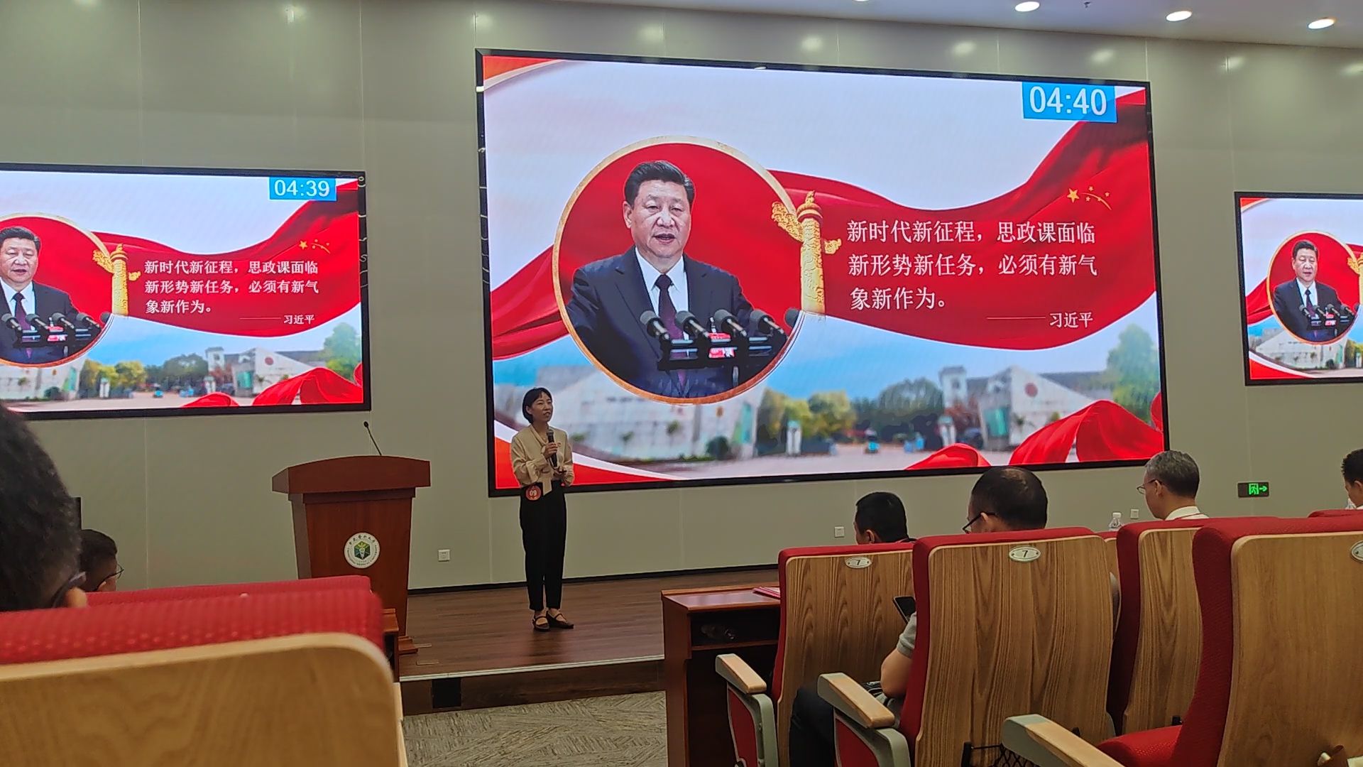 在理论宣讲环节,孟莎莎以“一马当先 凝心铸魂”为题,从“党建+业务”双轮驱动的“5+”工作思路出发,生动展现了党建与大思政课建设、教学改革、师资培养、业务提升和社会服务深度融合的实践智慧。