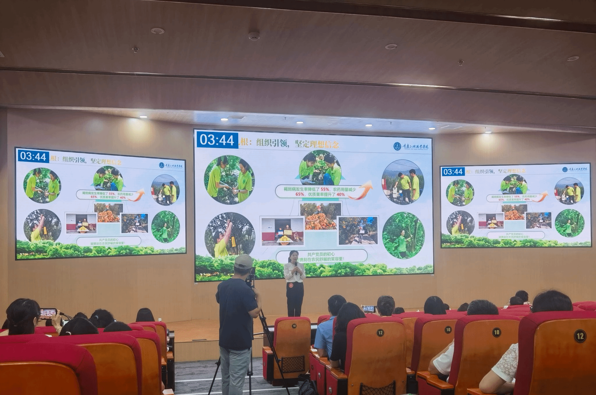 余夏君以“扎根沃土 花开田野 果献时代——新时代农林青年的乡村振兴誓言”为题,以习近平总书记给中国农业大学科技小院的回信精神为指引,通过“扎根—开花—结果”人才培养轨迹,深情讲述了新时代农林青年的乡村振兴故事,彰显了高校基层党组织在乡村振兴战略中的责任与作为。