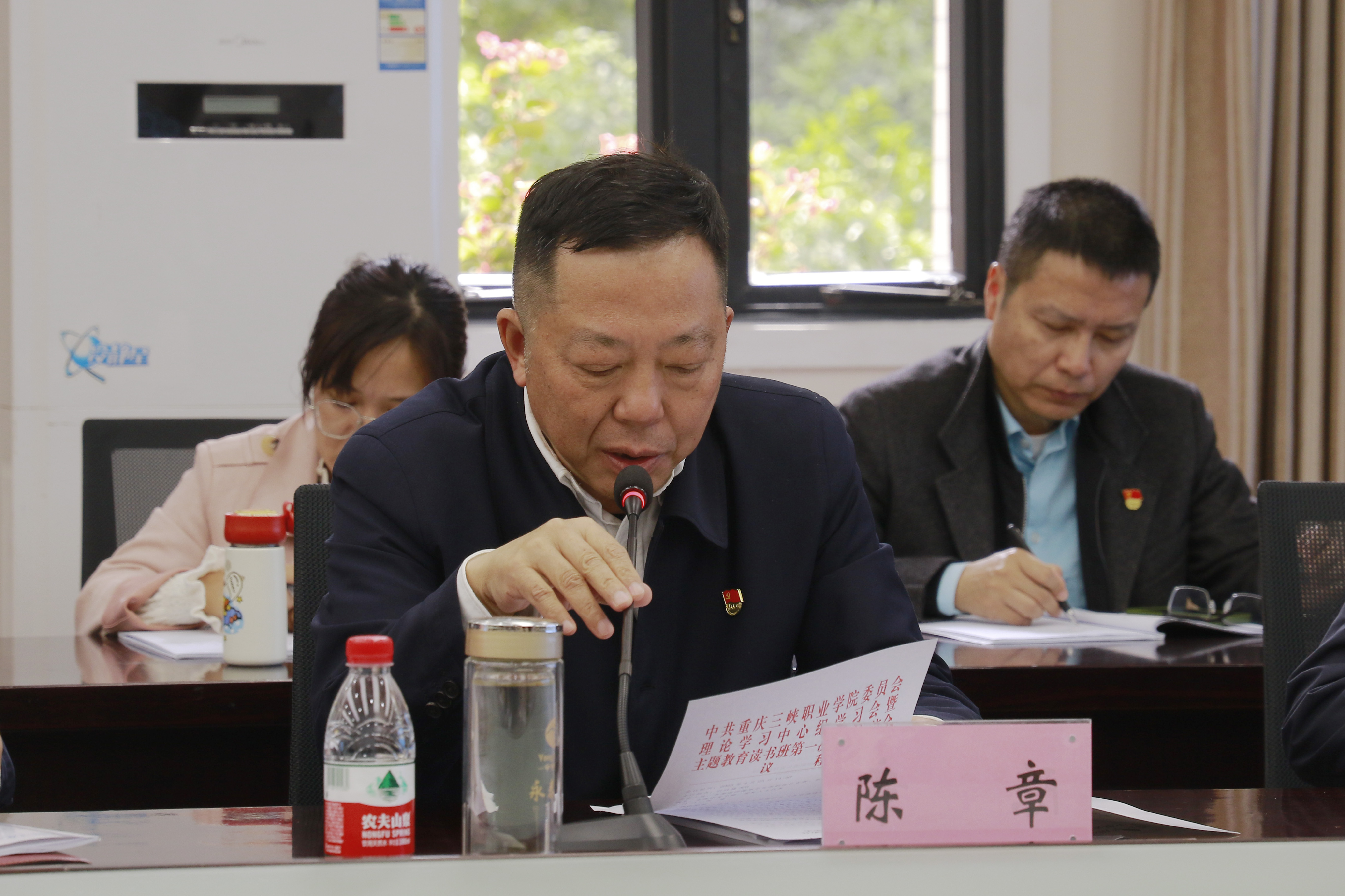 为深入推进学习贯彻习近平新时代中国特色社会主义思想主题教育走深走实,根据中共重庆三峡职业学院委员会《学习贯彻习近平新时代中国特色社会主义思想主题教育读书班实施方案》安排,4月25日下午,学院在行政楼303召开党委理论中心组学习会暨主题教育读书班第一次集中交流会。市委巡回指导十五组副组长宫辉,组员吴超出席会议;宫辉副组长作指导讲话。读书班全体成员、党外人士代表等60余人参加会议。党委书记陈章主持会议。
