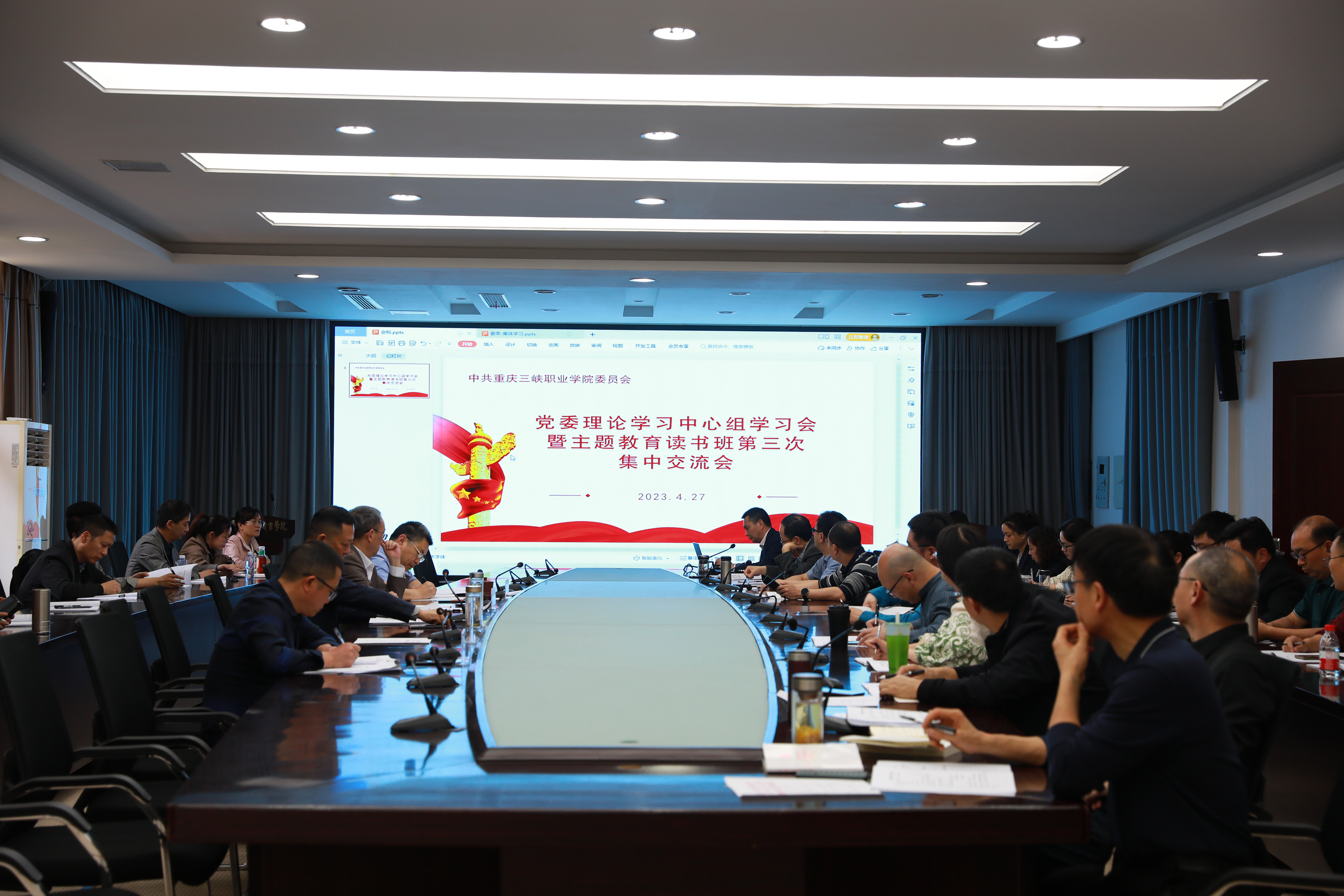 为深入推进学习贯彻习近平新时代中国特色社会主义思想主题教育走深走实,根据中共重庆三峡职业学院委员会《学习贯彻习近平新时代中国特色社会主义思想主题教育读书班实施方案》安排,4月27日下午,学院在行政楼303召开党委理论中心组学习会暨主题教育读书班第三次集中交流会。读书班全体成员、党外人士代表等60余人参加会议。会议由学院党委书记陈章主持。