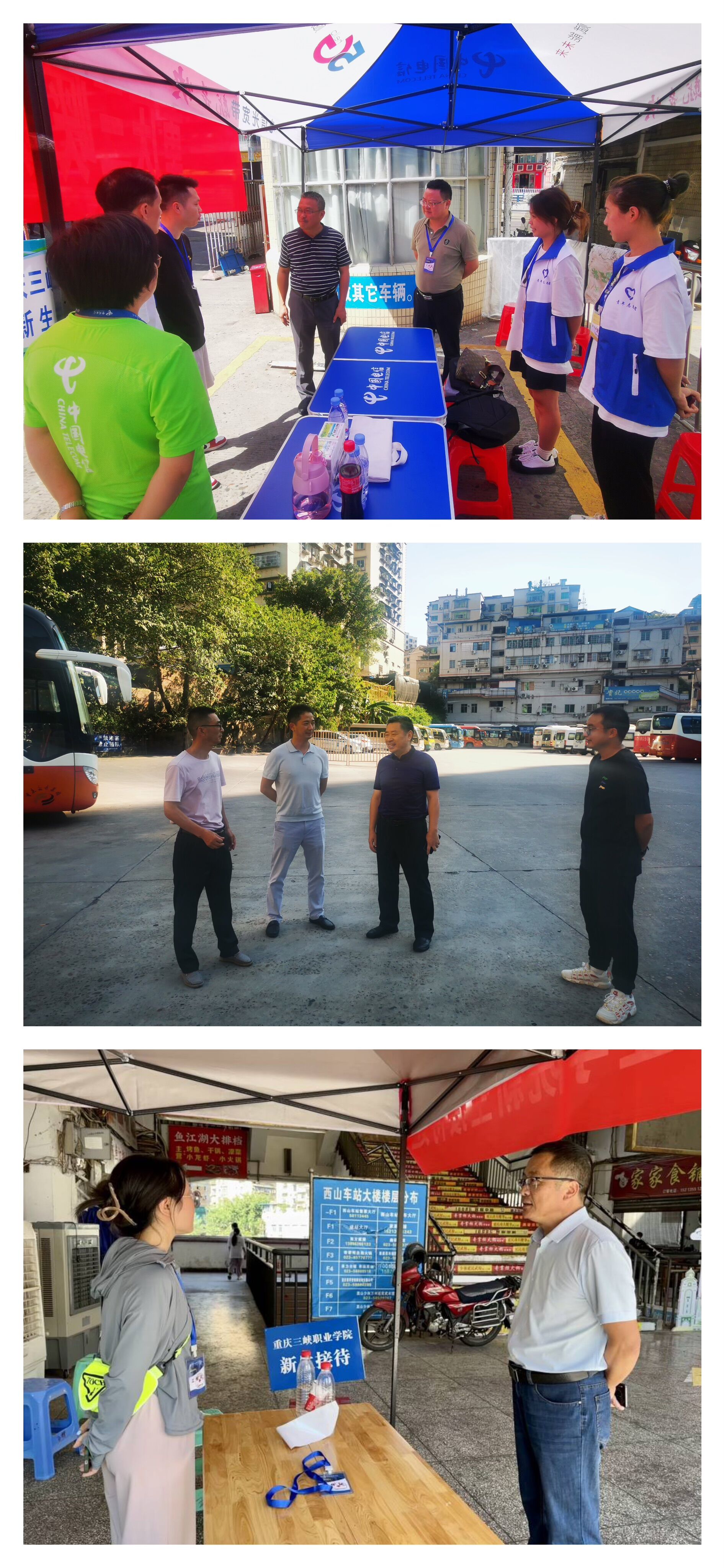 学院领导一行先后到万州高铁北站、西山车站、国本路车站、汽车南站等检查接站点布置情况,看望关心接站师生及青年志愿者,详细了解接站工作情况。李炯光院长充分肯定大家的热情服务,叮嘱站点师生既要做好新生服务工作,也要注意自身安全,并转达了学院领导对接站师生的深切关怀和亲切问候。