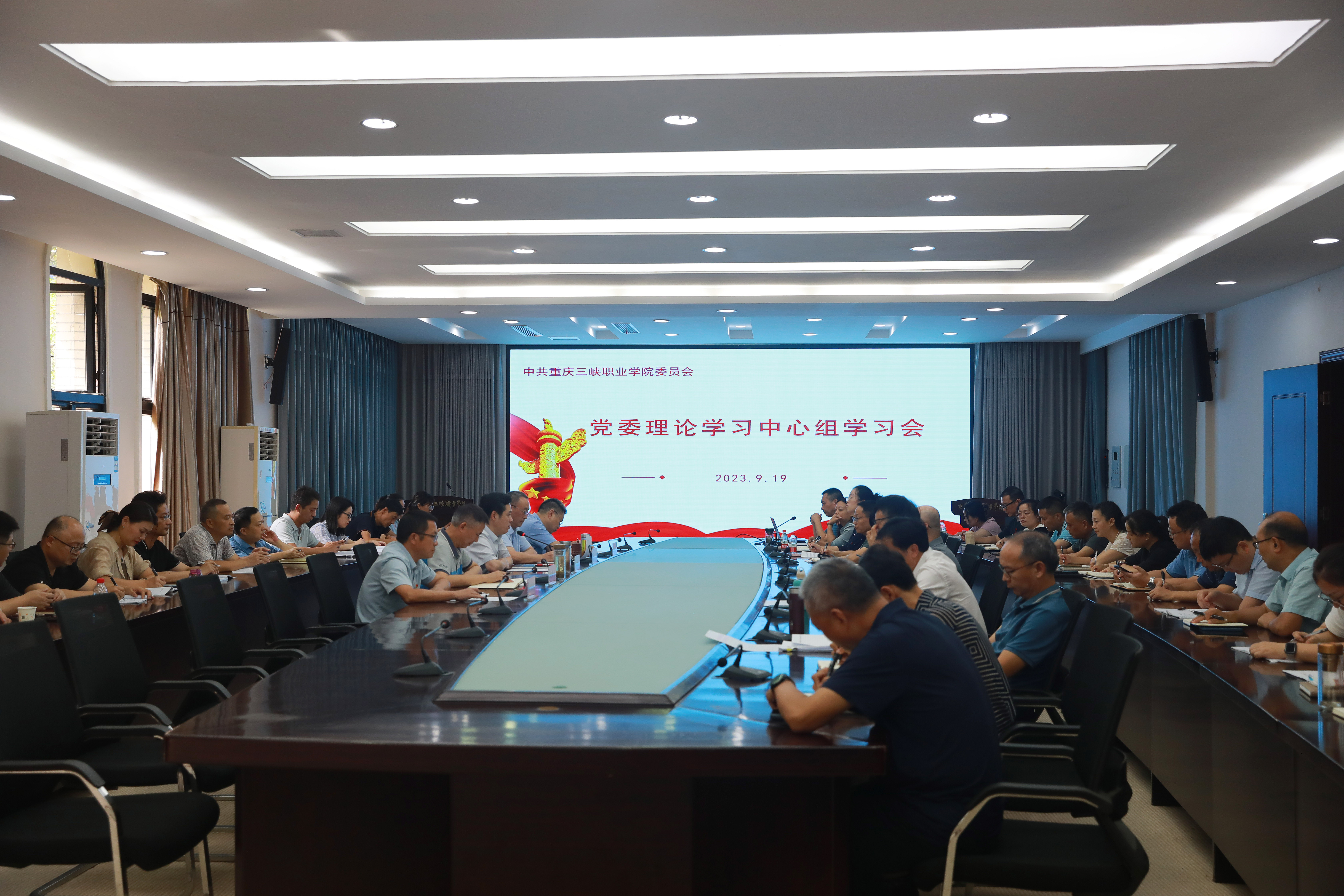 9月19日,学院于行政楼303会议室召开党委理论学习中心组(扩大)学习会。学院全体在家院领导、中层干部参会,党外人士代表列席会议。党委书记谈建成主持会议并作总结讲话。