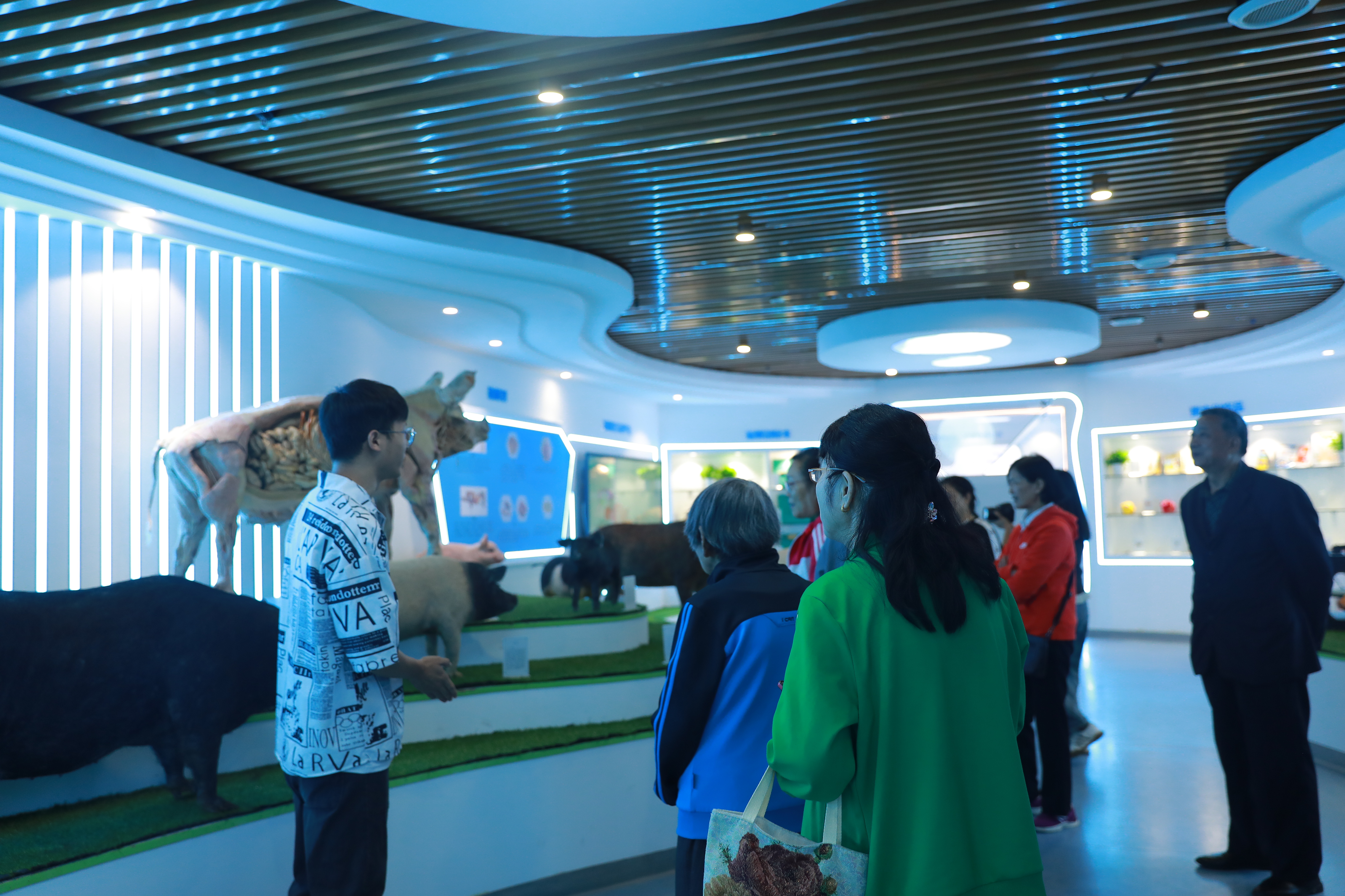 上午10时许,老同志们相聚踏入校园,在工作人员及学生志愿者的陪同下,老同志们参观了新建的动科楼和学生活动中心,包括实验室、办公室、生猪科技馆等场地。动物科技学院的李思琪副书记、李文娟老师热情地接待了各位老同志,老同志通过讲解员的耐心讲解及近距离参观,纷纷感叹到新教学楼的现代与科技,为学校的发展感到由衷欣喜。