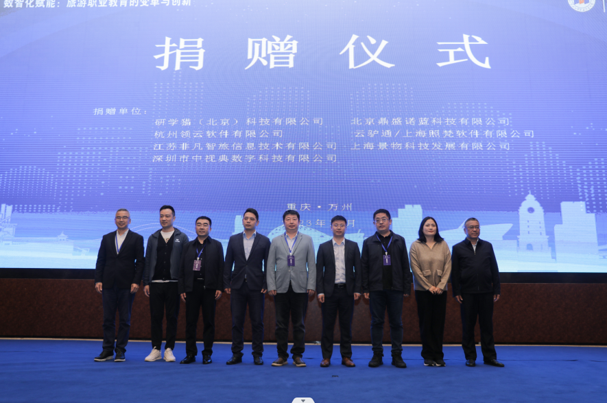 开幕式上还举行了企业捐赠仪式与全国旅游数智化教学名师工作室授牌仪式。数名关注旅游职业教育发展的企业家,共计为宁波城市职业技术学院、三峡职业学院捐赠700余万元,用于实训基地建设与人才培养。