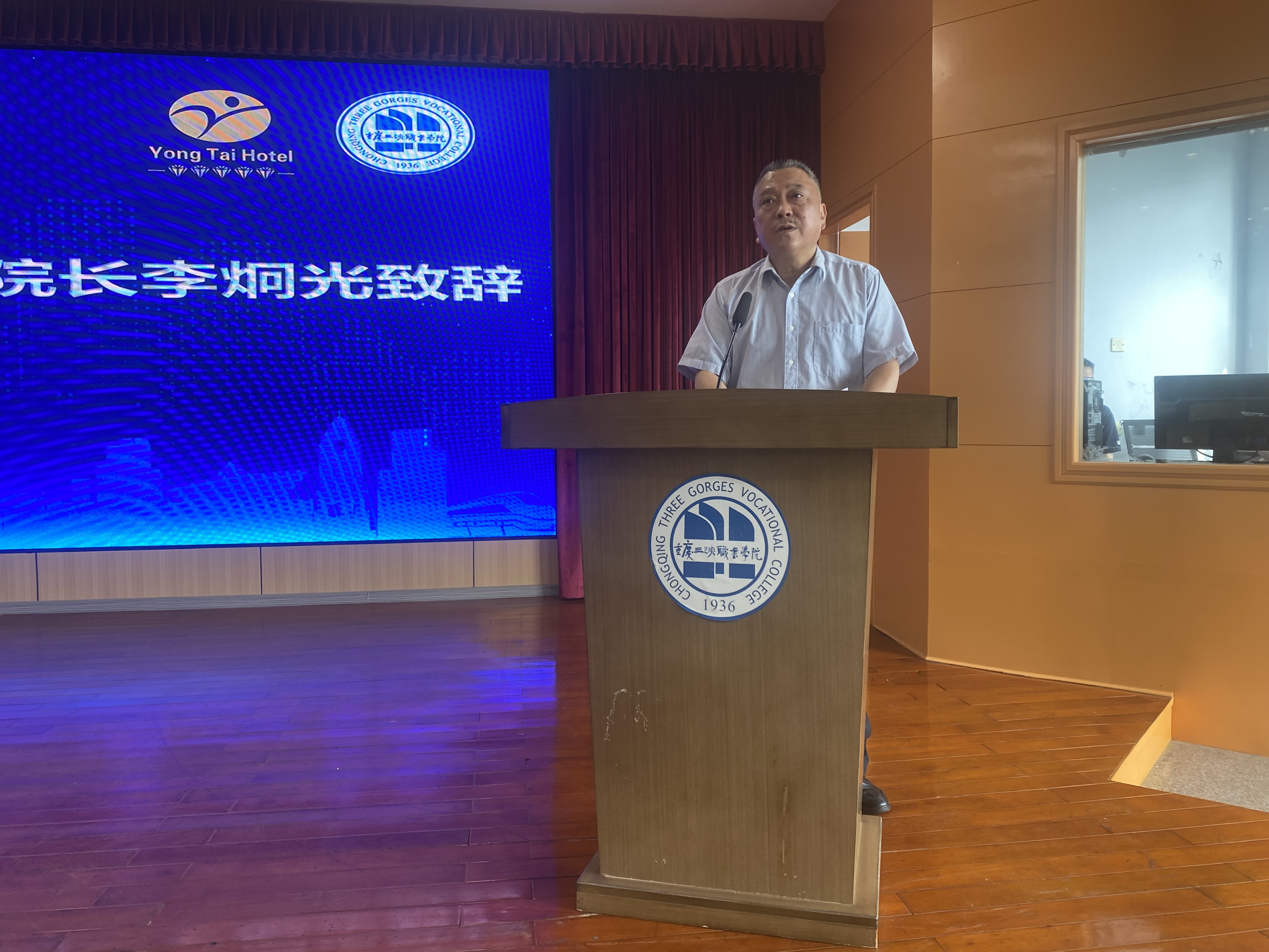 4月28日上午,重庆三峡职业学院永泰柯岩酒店产业学院揭牌及捐赠仪式在沙龙校区学术报告厅举行。学院院长李炯光、副院长赵福奎、副院长张传师、浙江柯桥永泰柯岩酒店董事长周立、总经理施国财等领导出席仪式,学院教务处、财务处、对外合作交流处、经济管理学院等负责人参加仪式。仪式由副院长赵福奎主持。