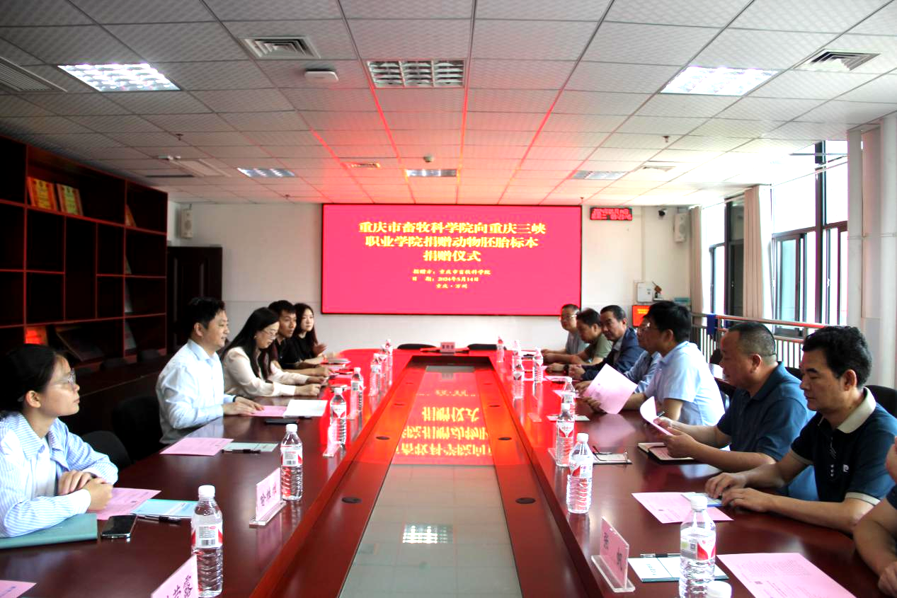 5月14日,重庆市畜牧科学院向我院捐赠动物胚胎标本捐赠仪式在现代畜牧科技大楼412会议室举行,重庆市畜牧科学院党委委员 副院长王启贵、养猪研究所所长郭宗义,学院党委委员 副院长张传师出席仪式。本次捐赠仪式由动物科技学院李思琪主持。
