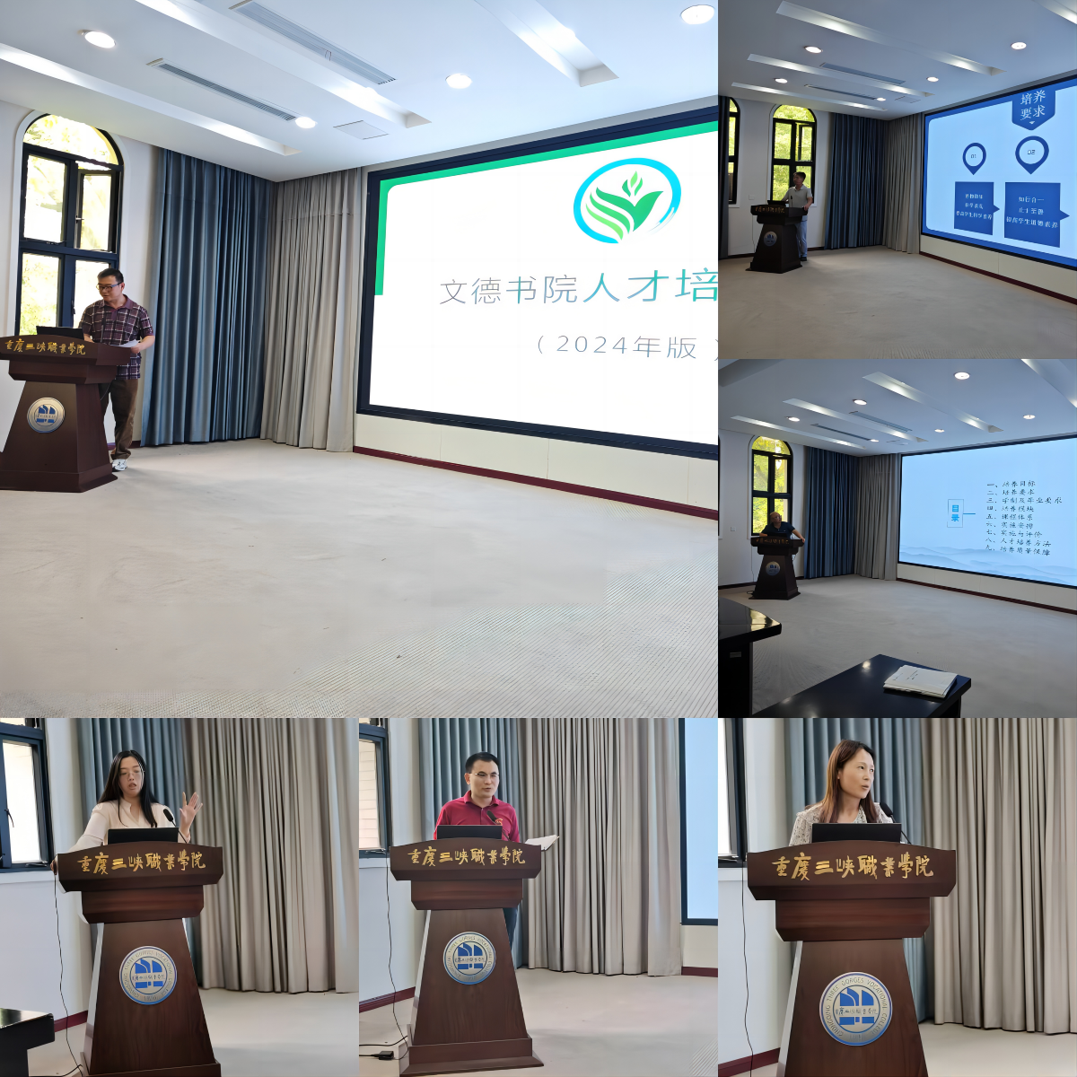 会议上,峻德书院、文德书院、正德书院、广德书院、明德书院各书院院长分别从前期调研、培养目标确定、育人活动设计、实施与评价考核、实施保障等维度对书院人才培养方案进行了详细汇报。