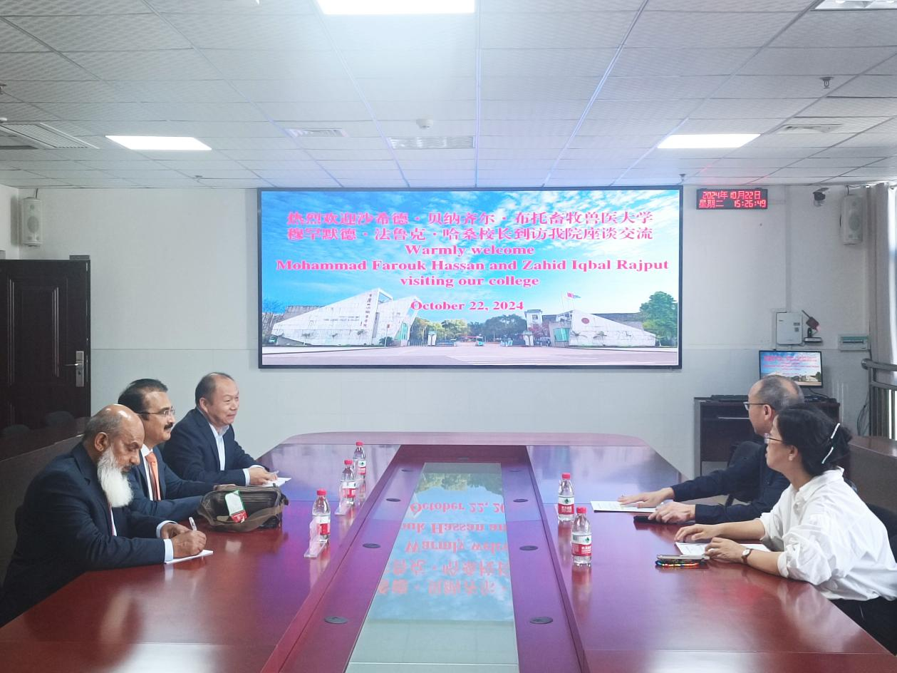 10月22日至23日,我国睦邻友好国家巴基斯坦沙希德·贝纳齐尔·布托畜牧兽医大学校长Mohammed Farooque Hassan和Zahid Iqbal Rajput院长莅临美丽万州,与动物科技学院领导、畜牧专业骨干齐聚一堂,共谋跨国校际之间合作新篇章。