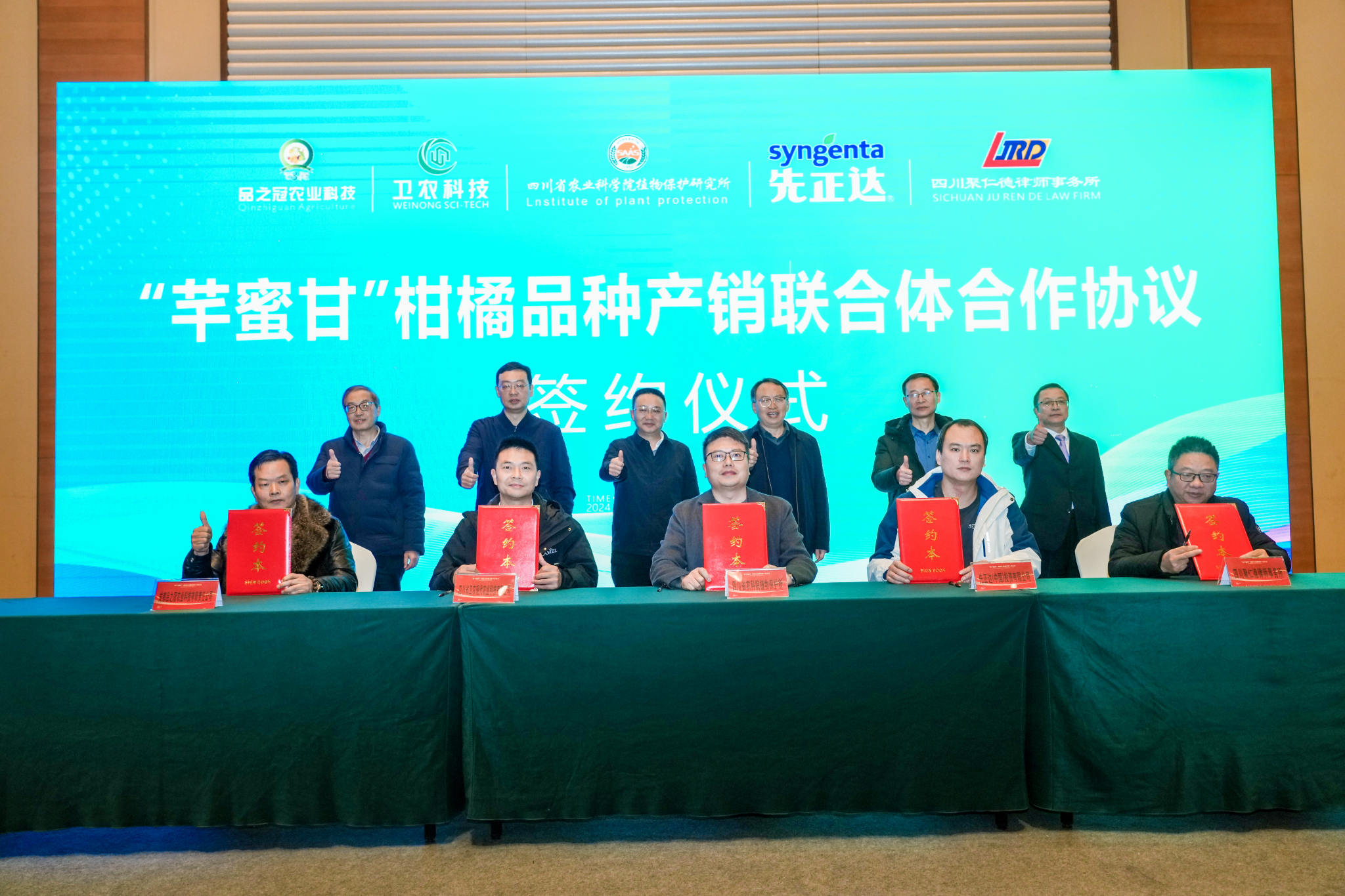 在签约仪式上,学院袁德梽副院长作为嘉宾见证“芊蜜甘”柑橘品种产销联合体合作协议签订。仪式同步签约了“四川天府粮仓卫农科技有限公司项目战略投资意向书”卫农获得天府粮仓正式控股收购51%,并达成“江苏省农药所与四川卫农科技战略合作协议”。
