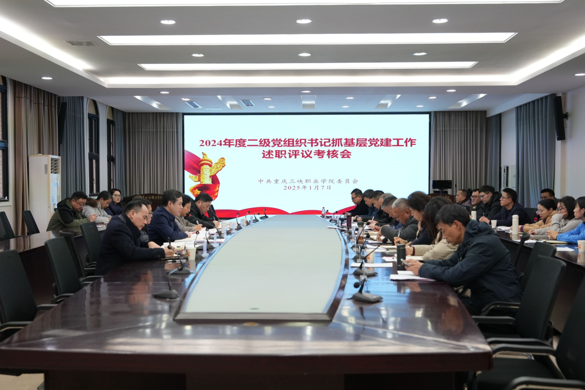202517日下午,学院党委召开2024年度二级党组织书记抓基层党建工作述职评议会。学院党委领导班子成员出席会议,各二级党组织书记、副书记,各党支部书记及二级学院专职组织员等参。会议由学院党委副书记杨梅主持。