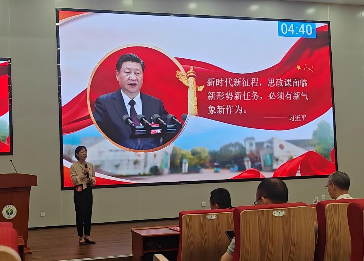 在理论宣讲环节,孟莎莎以“一马当先 凝心铸魂”为题,从“党建+业务”双轮驱动的“5+”工作思路出发,生动展现了党建与大思政课建设、教学改革、师资培养、业务提升和社会服务深度融合的实践智慧。