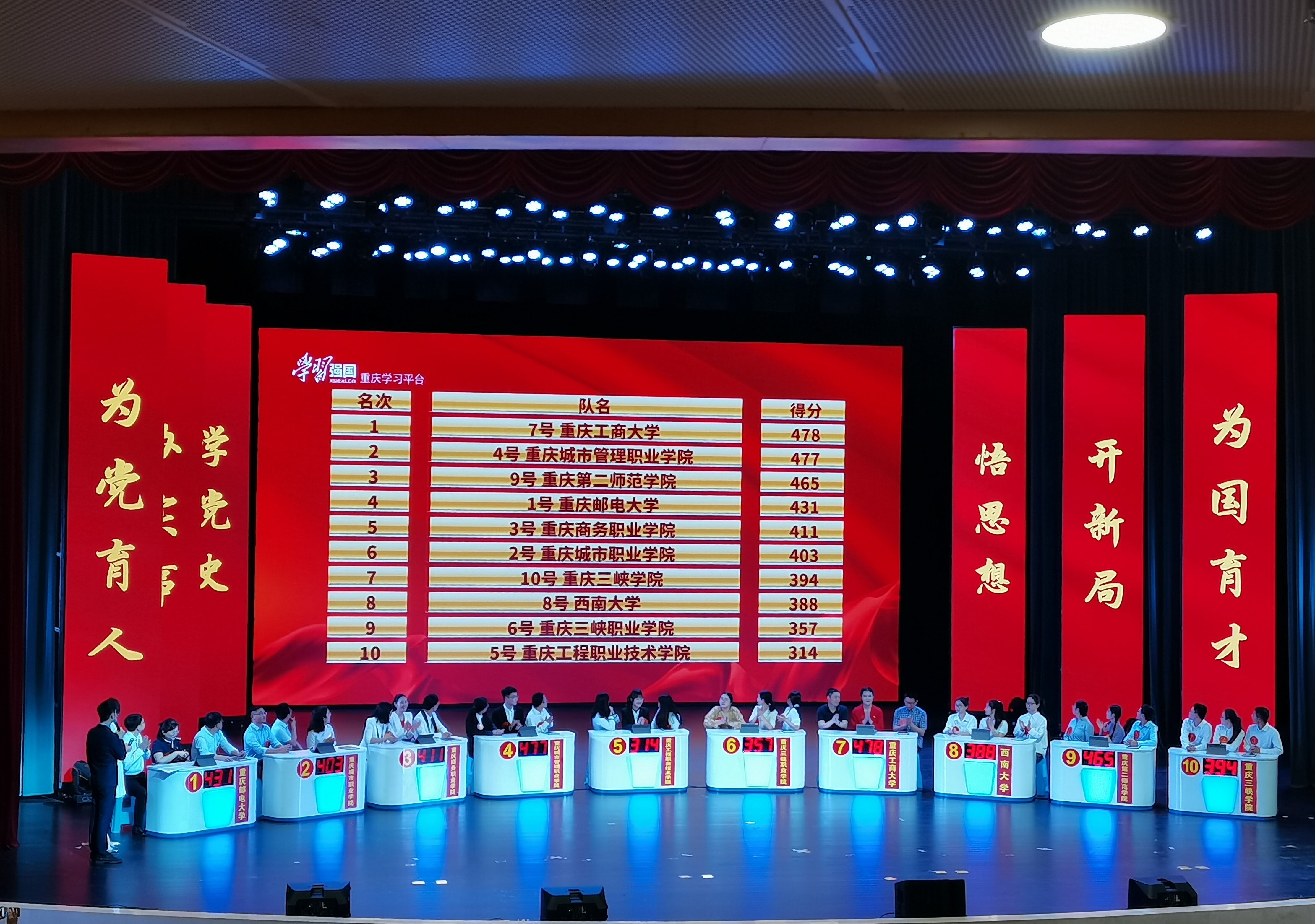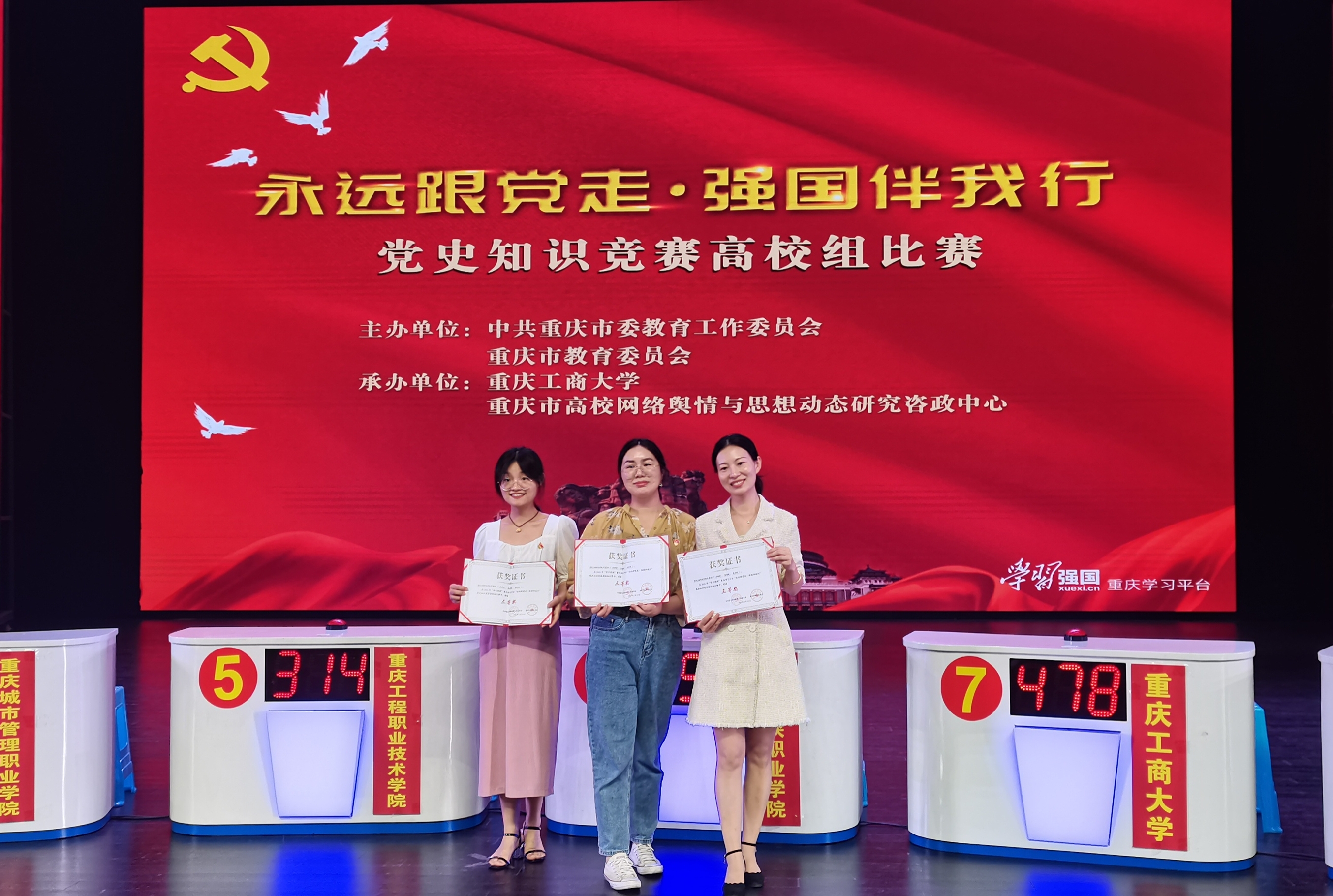 6月10日,由市委教育工委主办的“永远跟党走·强国伴我行”党史知识竞赛高校组比赛在重庆工商大学圆满落幕。我院参赛队伍勇战对手,获得团体三等奖的好成绩。