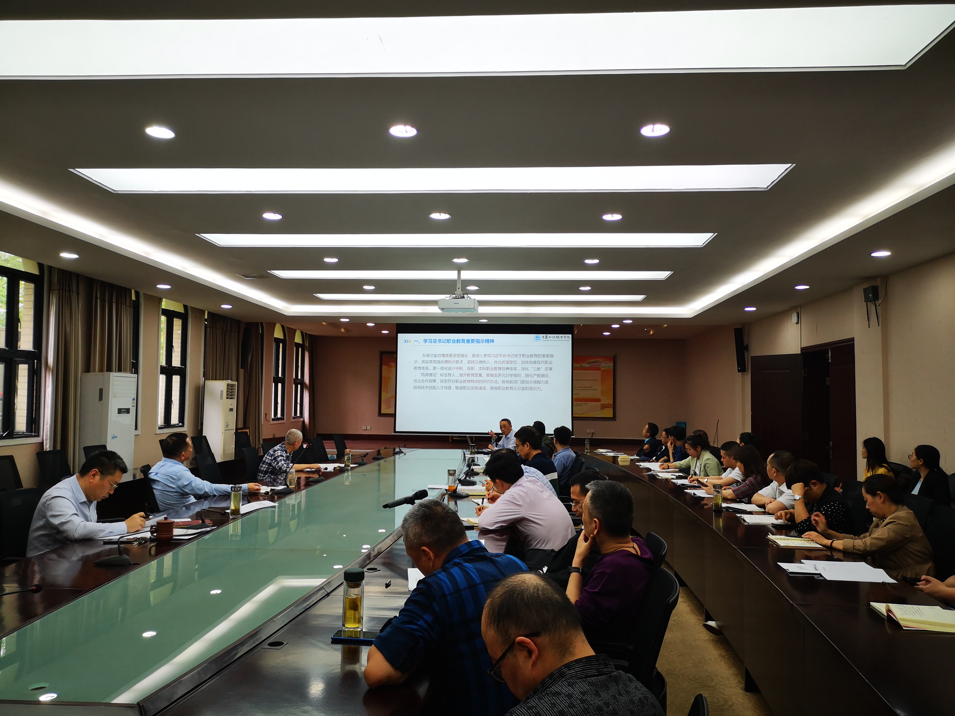 党委书记陈章强调,要深入学习习近平总书记对职业教育工作的重要指示精神和习近平总书记关于教育的重要论述,紧扣时代脉搏,切实领会职教发展新理念,担起立德树人重大使命,贯彻落实职教大会精神,真正实现职业教育大有可为、大有作为。