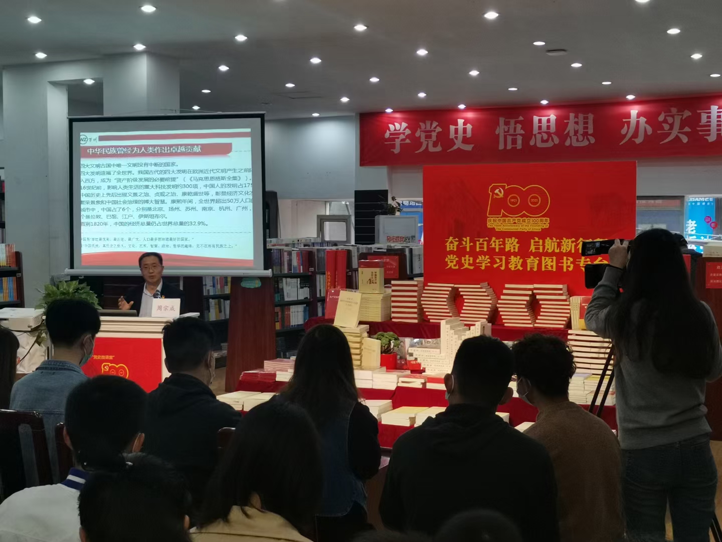 4月10日,由区委组织部、区委宣传部主办的“百年复兴梦奋进新时代”庆祝建党100周年“党史微课堂”在万州新华书店开讲。本次讲座由万州区党校副校长周宗成主讲,我院近50名团员青年现场聆听了讲座。