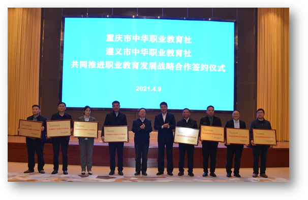 4月9日,重庆市中华职业教育社与遵义市中华职业教育社签署共同推进职业教育发展战略合作协议,双方将在职业人才培养和实训基地建设等多方面开展战略合作,推进渝遵职业教育协同发展。