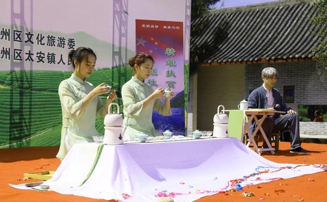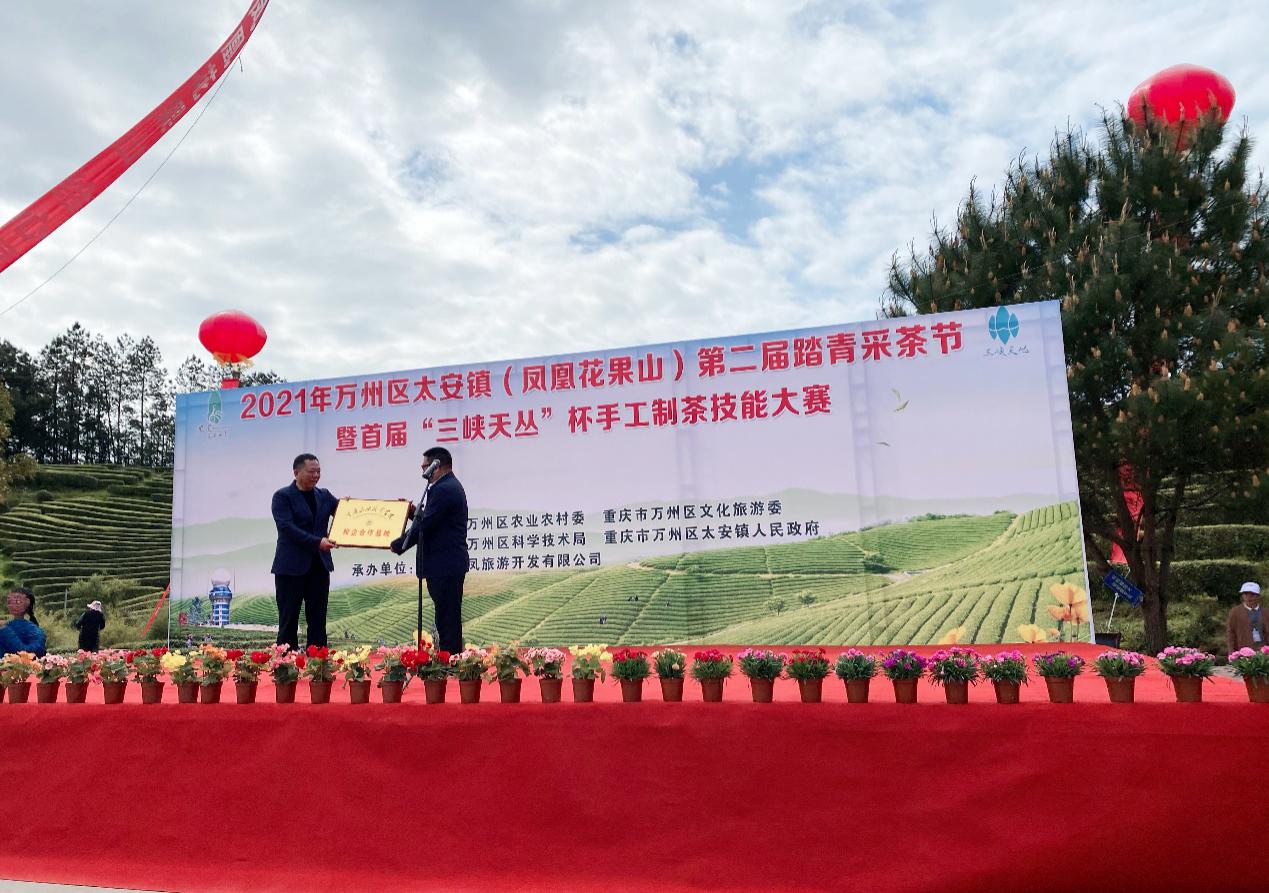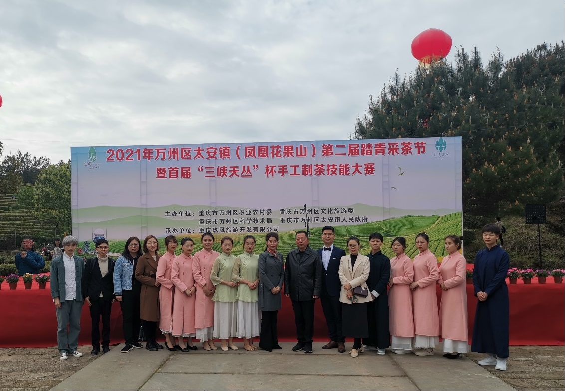 人间四月茶香浓,4月8日上午,2021年万州区太安镇第二届踏青采茶节暨首届“三峡天丛”杯手工制茶技能大赛在凤凰茶乡花果山景区举行。万州区副区长涂立军、万州区政协副主席周红霞等相关部门领导出席开幕活动,学校党委书记陈章应邀出席活动。太安镇党委书记王权英致欢迎词,重庆玖凤旅游开发有限公司总经理余梦云致景区推介词。