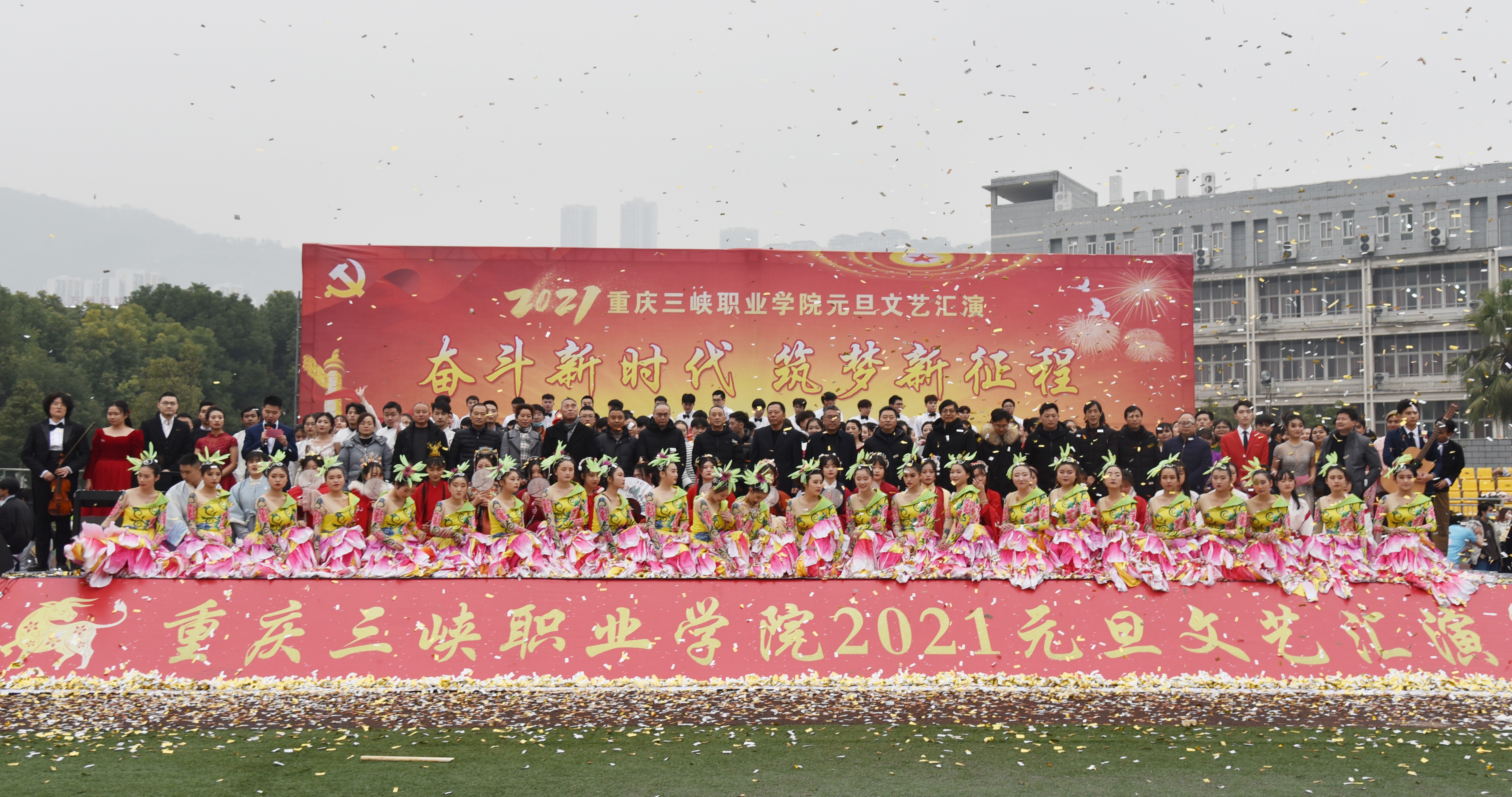 子去丑来腾锦绣,鼠归牛到竞辉煌。12月28日下午,学院2021年元旦文艺汇演在足球场绚丽启幕。学院党委书记陈章,院长李炯光,副院长张智,纪委书记王凯,各二级学院党总支、部分职能部门负责人,以及在场的5000余名师生欢聚一堂,喜迎新年。