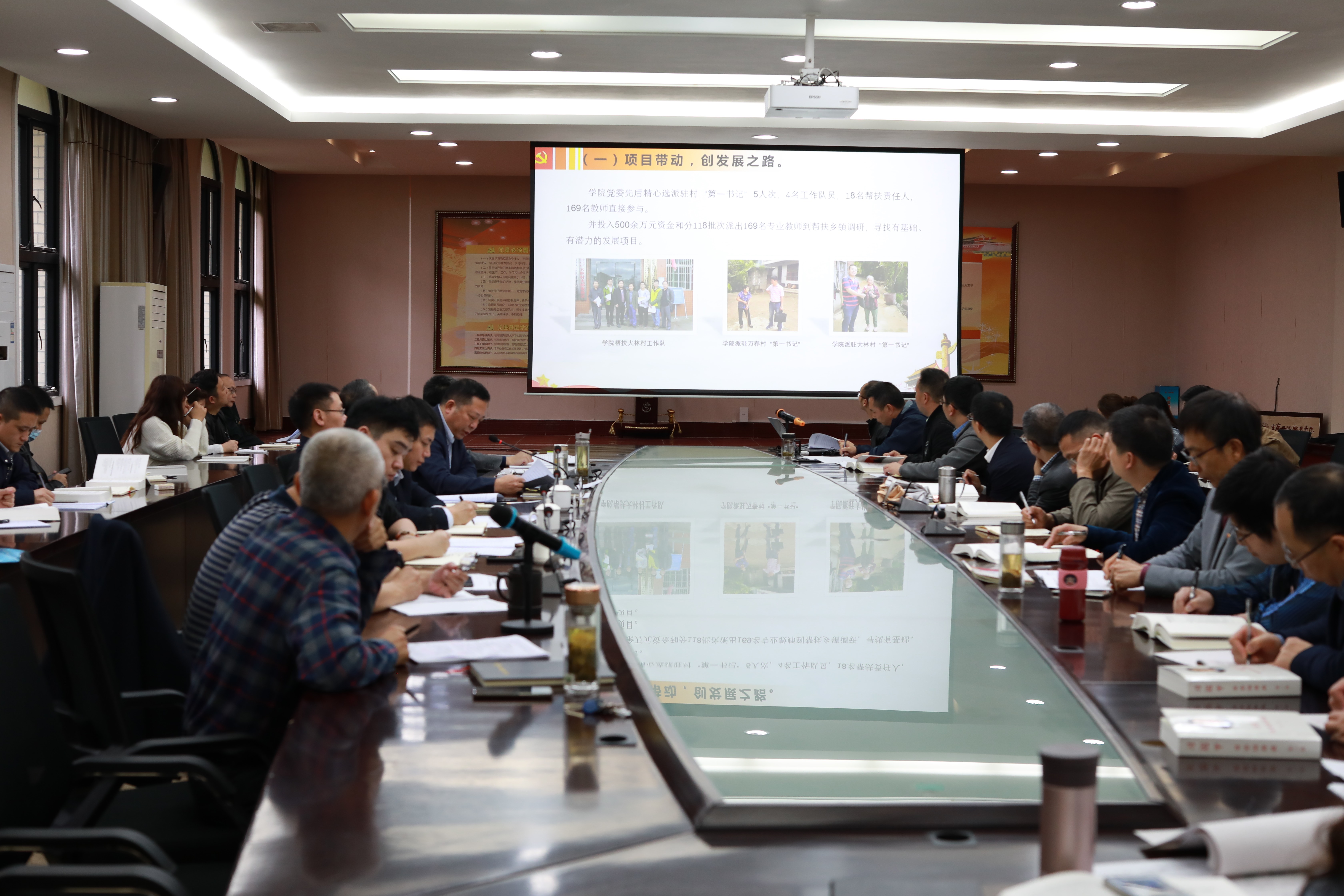 10月15日下午,我院党委理论学习中心组(扩大)学习会在行政楼303会议室召开。市委教育工委第三工作组组长钱程,组员严国华、姜瑞民参加集中学习会,并指导我院理论学习中心组工作。学习会由学院党委书记陈章主持,学院院领导、党委委员、全体中层干部、农林科技学院部分教师、继续教育学院全体教师、乡村振兴课题组主研成员参加学习会。