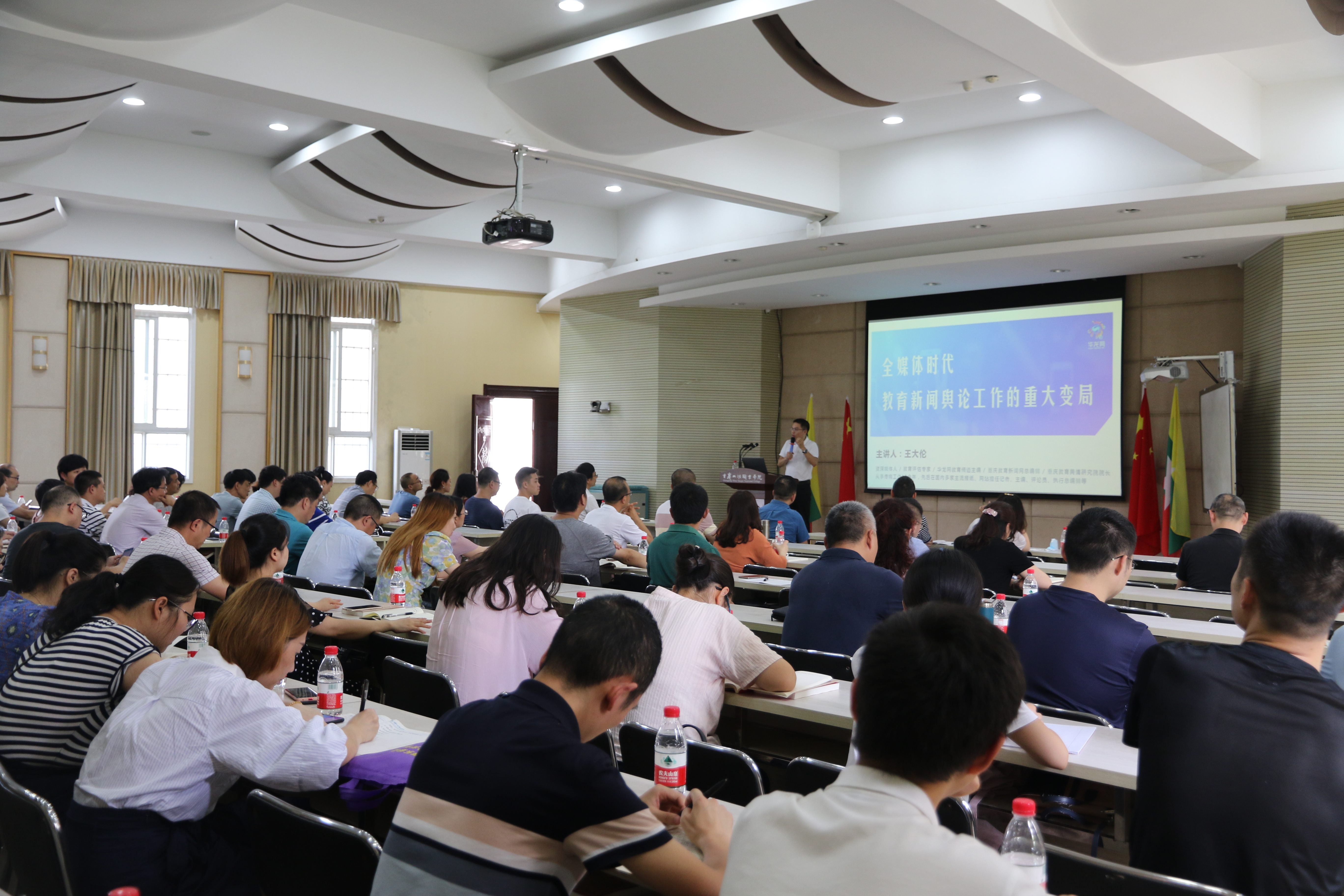 为提高新闻舆论宣传工作水平,加强学校教师对全媒体时代教育新闻舆论工作的深刻认识,7月9日下午,学校邀请了重庆市华龙网教育频道主编王大伦做了题为《全媒体时代教育新闻舆论工作的重大变局》的专题讲座。学校党委书记陈章,处科级干部、各党总支宣传委员、各二级机构新闻信息员和网络评论员聆听讲座。