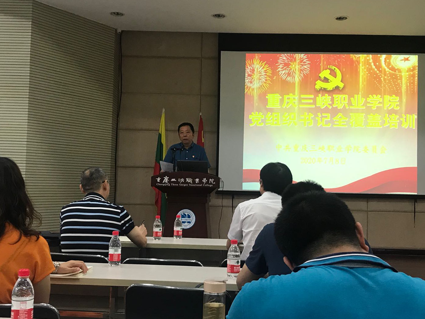 为深入贯彻习近平新时代中国特色社会主义思想和党的十九大、十九届二中、三中、四中全会精神,紧密结合推进“两学一做”学习教育常态化制度化要求,巩固“不忘初心、牢记使命”主题教育成果,按照《中国共产党支部工作条例(试行)》规定和高校基层党建工作重点任务要求,7月8日,学校党委在博雅楼207举行党组织书记全覆盖培训。学校各党总支、党支部书记、副书记,二级学院党总支正副科级专职组织员参加培训。学校党委书记陈章出席培训开班式并讲话,开班式由学校党委委员、党委组织部部长杨吉林主持。