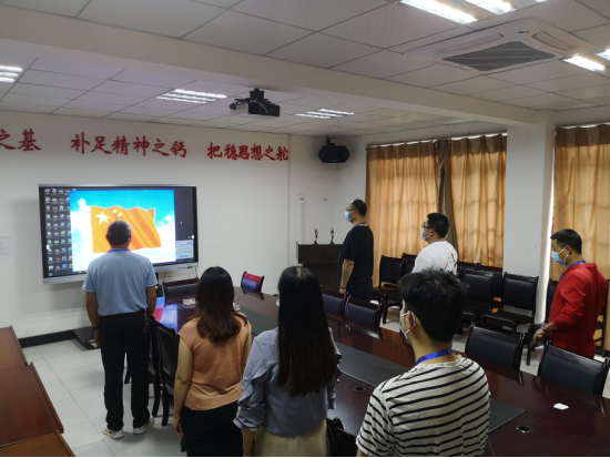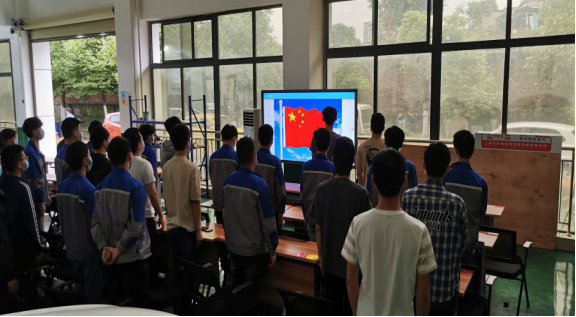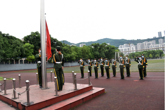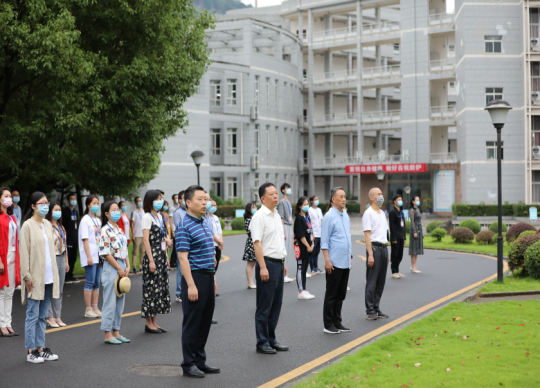 伴随着激昂雄壮的国歌声,中华人民共和国国旗在运动场冉冉升起。我校党政领导班子成员及相关职能处室在行政楼前参加升旗仪式,我校其他教师及全体学生在办公楼里、教室里、宿舍里注视屏幕上的五星红旗,庄严肃立,行注目礼。隔着屏幕、隔着空间,却不能隔断全校师生凝心聚力、携手战疫的坚定决心和信心,全校师生满怀着对新时代和新学期的憧憬,共抒爱国情怀。