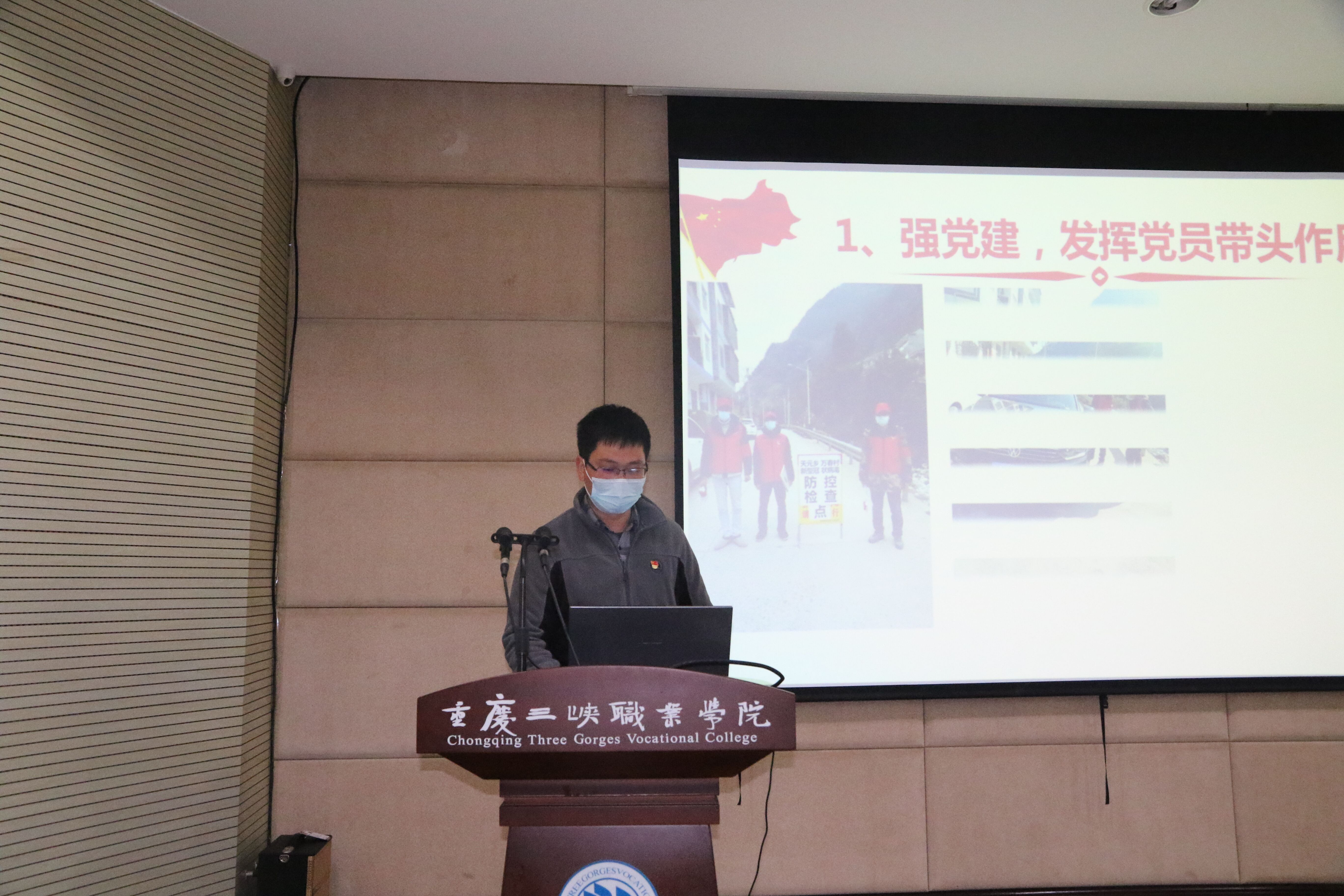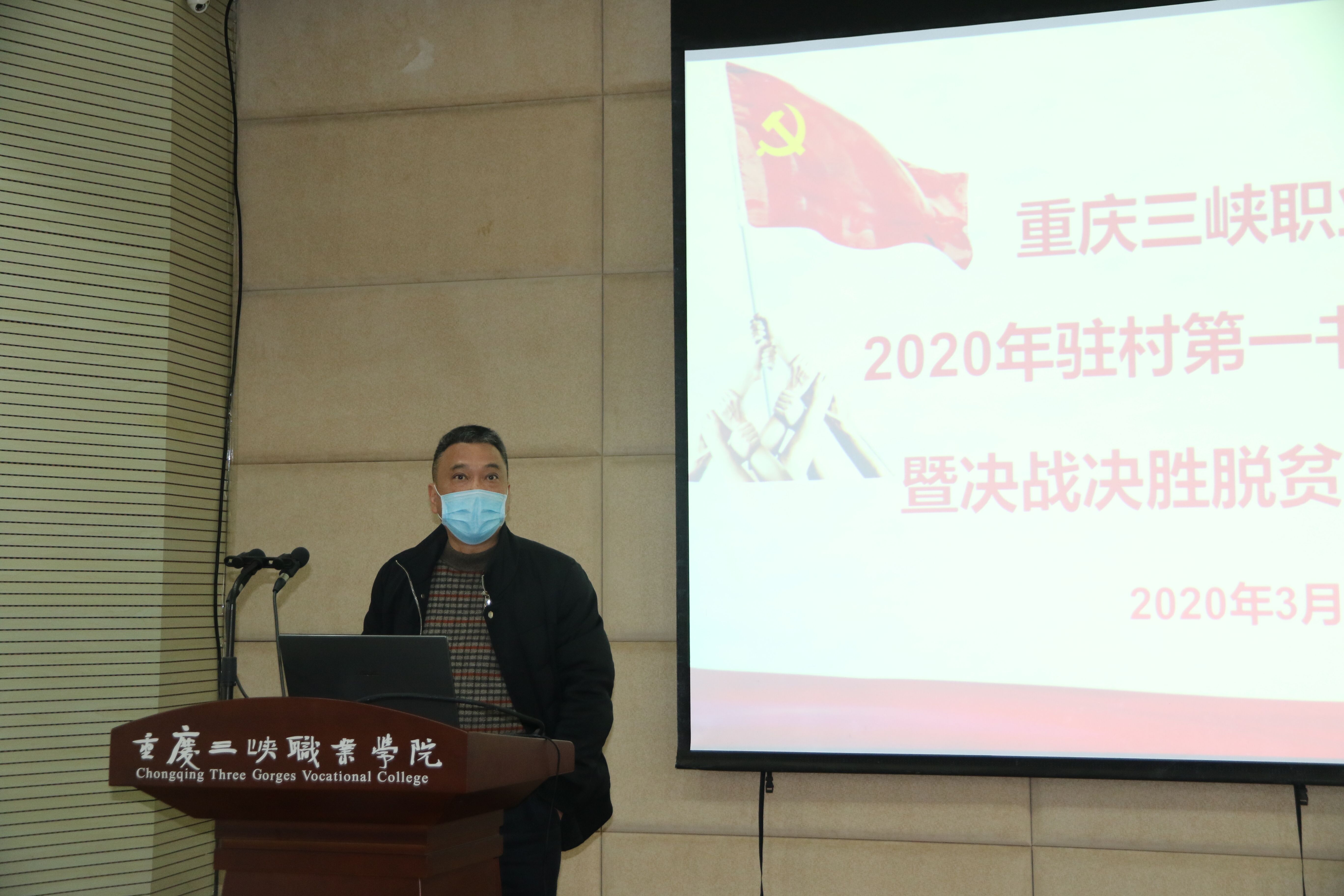 其次由学校派驻万州区白土镇大林村、巫溪县天元乡万春村和巫溪县土城镇土城社区的3位驻村第一书记进行扶贫工作汇报,驻村第一书记从扶贫工作开展情况、存在的现实问题与困难、下一步工作打算等方面作了总结报告。过去的一年,我校精准扶贫成绩显著:在大林村,结合当地产业现状,发展稻鱼产业500余亩,实施稻鱼共生促攻坚;帮助建立“三峡职院稻田鱼”、“三峡稻鱼米”品牌商标2个,实现资源变资产,实现产值翻番,帮助当地村民致富增收,确保稳定脱贫。在巫溪县天元乡万春村,驻村第一书记带领当地村民建起第一个标准化的腊肉加工厂,成为村民在家门口就业的扶贫车间,并实现腊肉销售稳步增长,给村民带来了较好的经济效益,使村民增强了脱贫致富的坚定信心,逐步走上脱贫奔小康之路。在巫溪县土城社区,聚焦解决“两不愁三保障”突出问题,把发展当地特色产业作为脱贫致富的重要抓手,用好学校捐赠的10万元产业发展资金,促进特色产业健康发展。