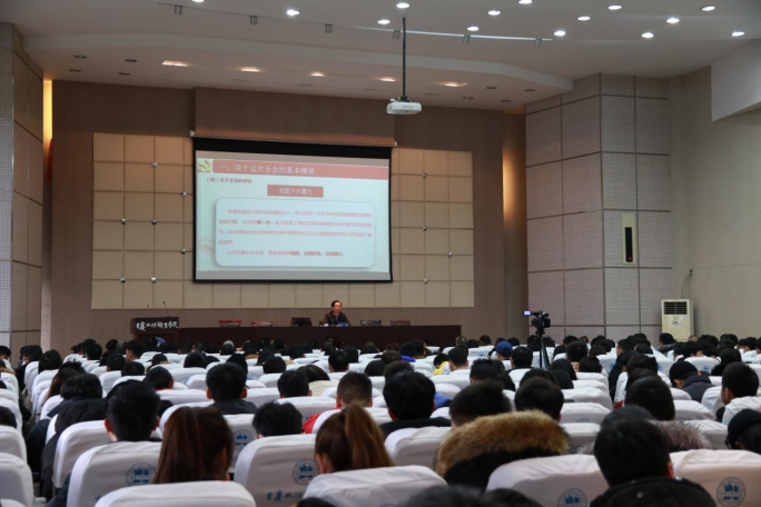 按照市委关于领导干部上讲台开展思想政治教育工作的要求及安排,12月29日,市委农业农村工委书记、市农业农村委主任路伟到重庆三峡职业学院作以“学习宣传贯彻党的十九届四中全会精神”为主题的宣讲报告,帮助广大师生准确理解、全面把握党的十九届四中全会精神,引导广大师生把思想和行动统一到全会精神上来,把智慧和力量凝聚到全会确定的各项目标任务上来。学院党委书记陈章主持报告会。