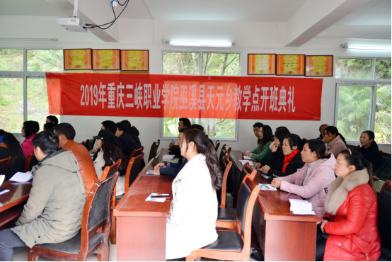 为适应“百万扩招”新形势,提升农民工综合文化素质和技能,按照学校扩招2019级学生人才培养方案, 12月10日,我校巫溪县天元乡教学点扩招班正式开班。巫溪县天元乡党委委员、纪委书记谭威,学校校长杨和平出席开学典礼。