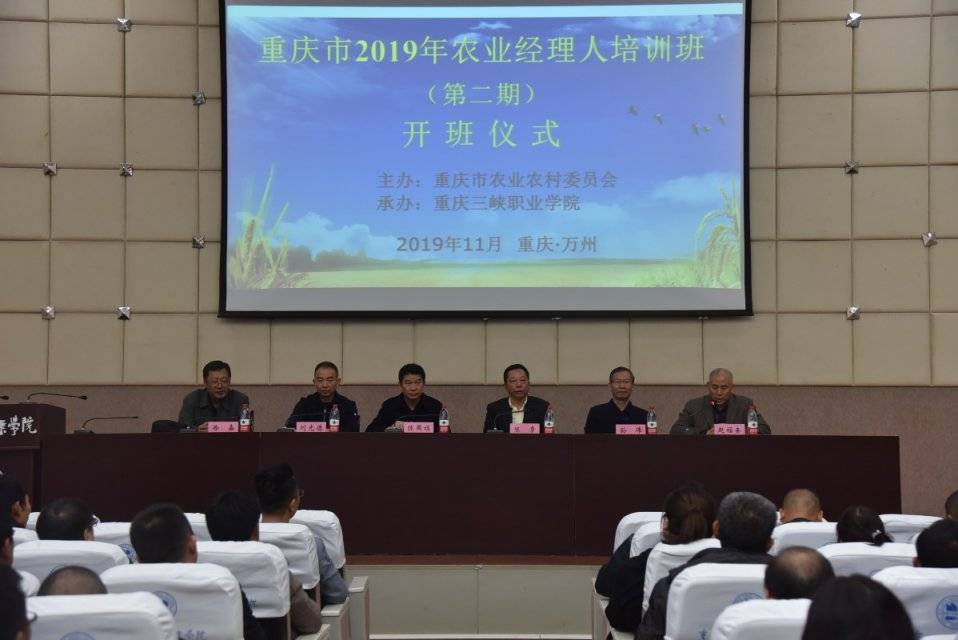为加快培养高素质农民队伍,服务乡村振兴战略,11月16日上午,由重庆农业农村委主办、重庆三峡职业学院承办的重庆市2019年农业经理人培训班(第二期)在我校博雅楼学术报告厅开班。重庆市农业农村委员会科技教育处处长陈国福,重庆市农业广播电视学校校长刘光德,重庆市农业农村委员会科技教育处处级调研员孙伟,重庆市农业农村委员会科技教育处副处级调研员徐嘉,学校党委书记陈章出席开班仪式。开班仪式由学校副校长赵福奎主持。
