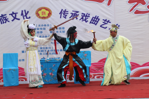 戏曲是中华文化的瑰宝,传承着中华民族活态的文化基因。振兴戏曲艺术,是贯彻落实党的十九大精神的重要举措,是培育和践行社会主义核心价值观的必然要求,是推动传统文化艺术薪火相传的现实需要。“戏曲进高校”活动是引导青年学生传承和发扬优秀传统文化,构建好心灵的绿水青山的重大举措。重庆市三峡川剧团的各位艺术家带来的精彩的演出,不仅让我校师生领略了戏曲艺术的魅力,更加丰富了校园文化内涵,对学校进一步开展传统文化教育有着积极的作用。