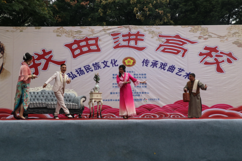 11月5日下午,由重庆市委宣传部、市教委、市文旅委、市文联主办的“戏曲进高校”活动在学校羽毛球场盛大开演,我校1000余名师生齐聚一堂,共享由重庆市三峡川剧团演员们带来的传统戏剧文化盛宴。