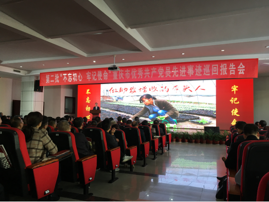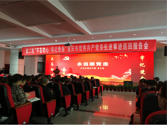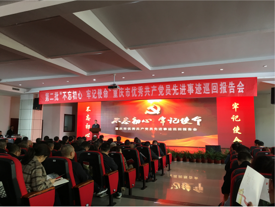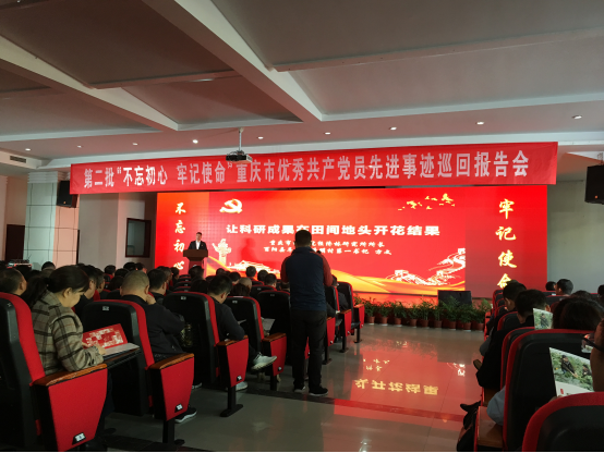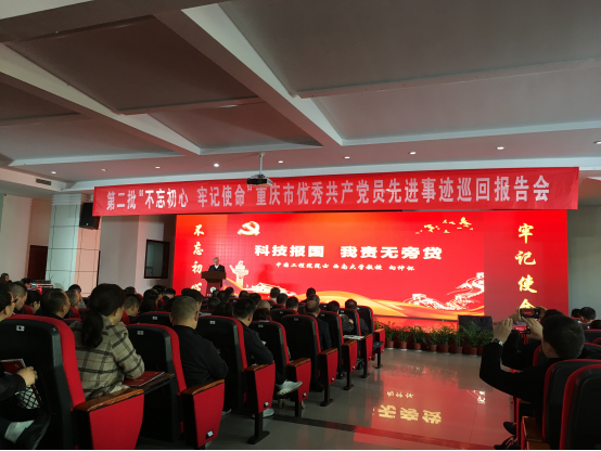 10月29日,“不忘初心、牢记使命”重庆市优秀共产党员先进事迹报告会在重庆三峡学院举行。市委“不忘初心、牢记使命”主题教育第十五巡回指导组组长姚红致辞。原江北区干果公司离休干部李玉珍;中国工程院院士、国际著名蚕学家、全国优秀教师向仲怀;重庆市三八红旗手标兵、重庆市青年岗位能手标兵杨媚;高级工程师、重庆市林业科学研究院经济林研究所所长、重庆市脱贫攻坚先进个人方文;西南大学大学生中国特色社会主义理论体系宣讲团成员丁甜甜等5名优秀共产党员作了报告。