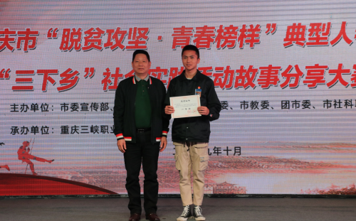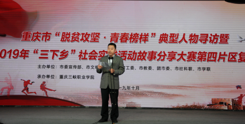 10月18日上午,重庆市“脱贫攻坚·青春榜样”典型人物寻访暨2019年“三下乡”社会实践活动故事分享大赛第四片区比赛在我校大学生活动中心举行。团市委高校部一级调研员李霞,团万州区委书记史令,校党委委员、副校长杨建宏,校党委委员、纪委书记王凯出席活动。