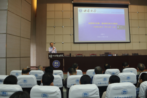 10月13日上午,西南大学教育学部部长朱德全教授受邀到我校讲学。学校在家校领导、全体教师在博雅楼学术报告厅聆听了讲座。