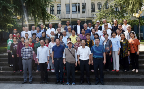 活动结束后,学校领导班子成员同退休教职工在学校行政办公楼前合影留念。