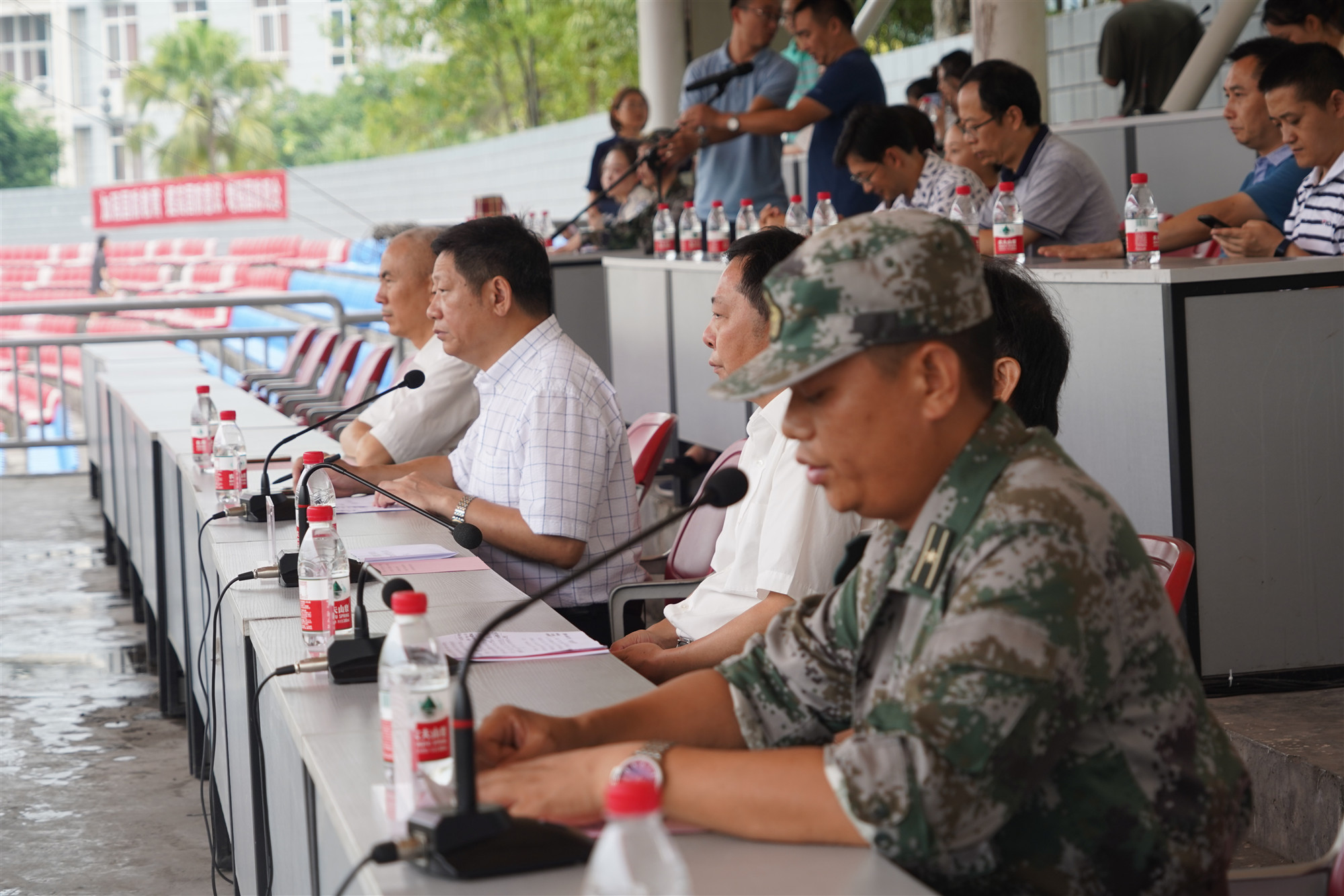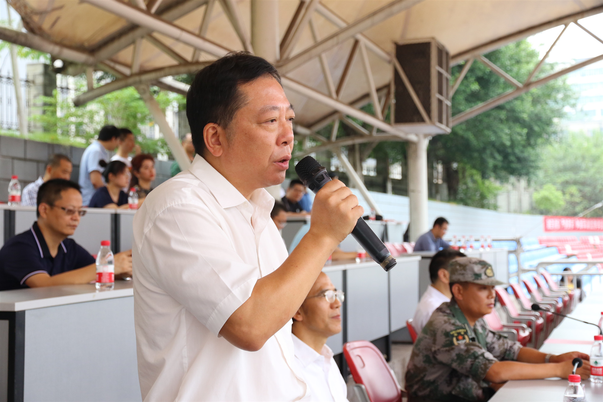 军训团团长喻永洪发表讲话,他希望全体教官承担好此次军训任务,精心组织、科学施训,展示军人形象。他希望全体新生不负韶华,珍惜光阴。