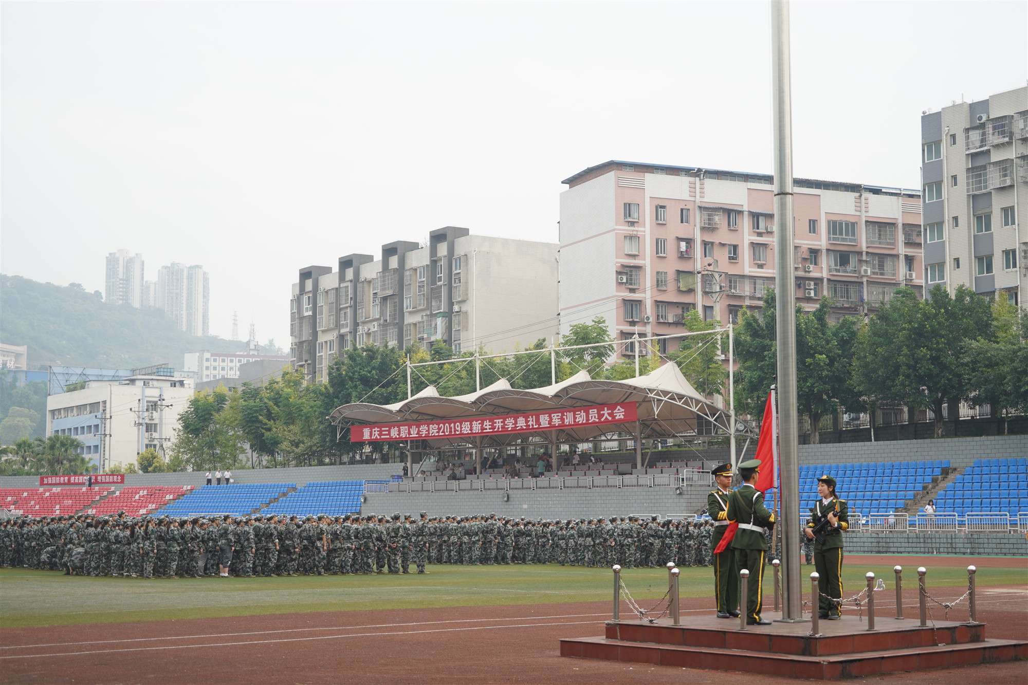 各职能部门、二级学院负责人,新生辅导员及2019级全体新生参加仪式。