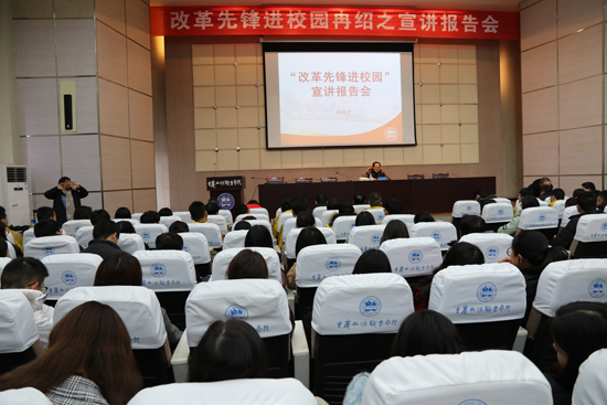 1月9日,在改革开放40周年大会上获得表彰的“改革先锋”冉绍之同志来到重庆三峡职业学院,向师生们宣讲参加改革开放四十周年大会的真情感受,见证改革开放的心路历程,参与改革开放伟大实践的难忘经历,以及对改革开放未来的美好向往。