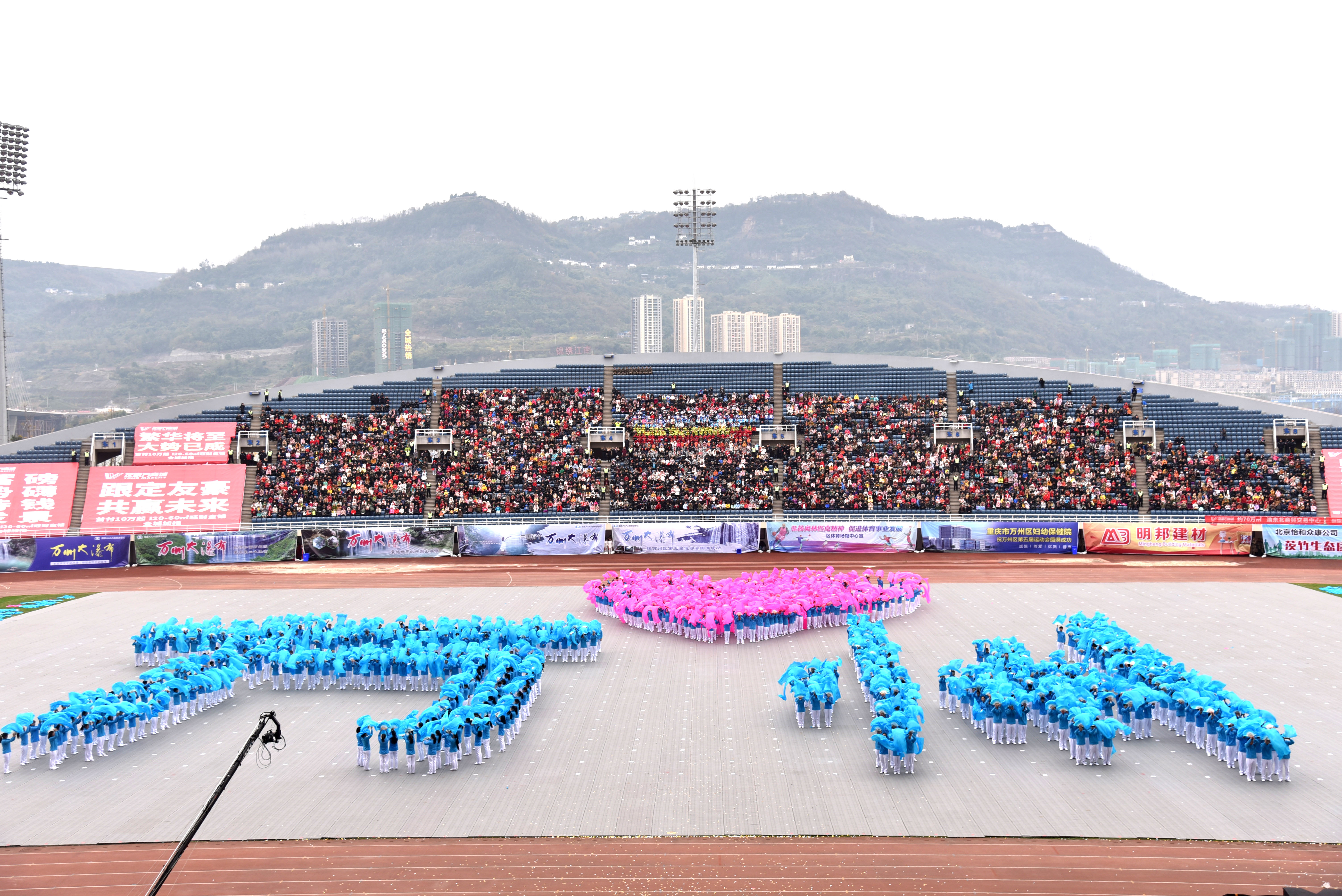 12月8日上午10点,万州区第五届运动会正式在万州区运动场开幕。万州区委副书记、区长白文农宣布开幕,区委常委、宣传部长刘丹文致辞,副区长吴宏伟主持开幕式。区领导王锋钊、刘伟、刘远新、陈保余、周红霞,万州经开区管委会副主任骆高燕参加活动。党委书记陈章等学院领导到开幕式现场,观看同学们的精彩表演,为我院学子灵动而精彩的呈现喝彩点赞。