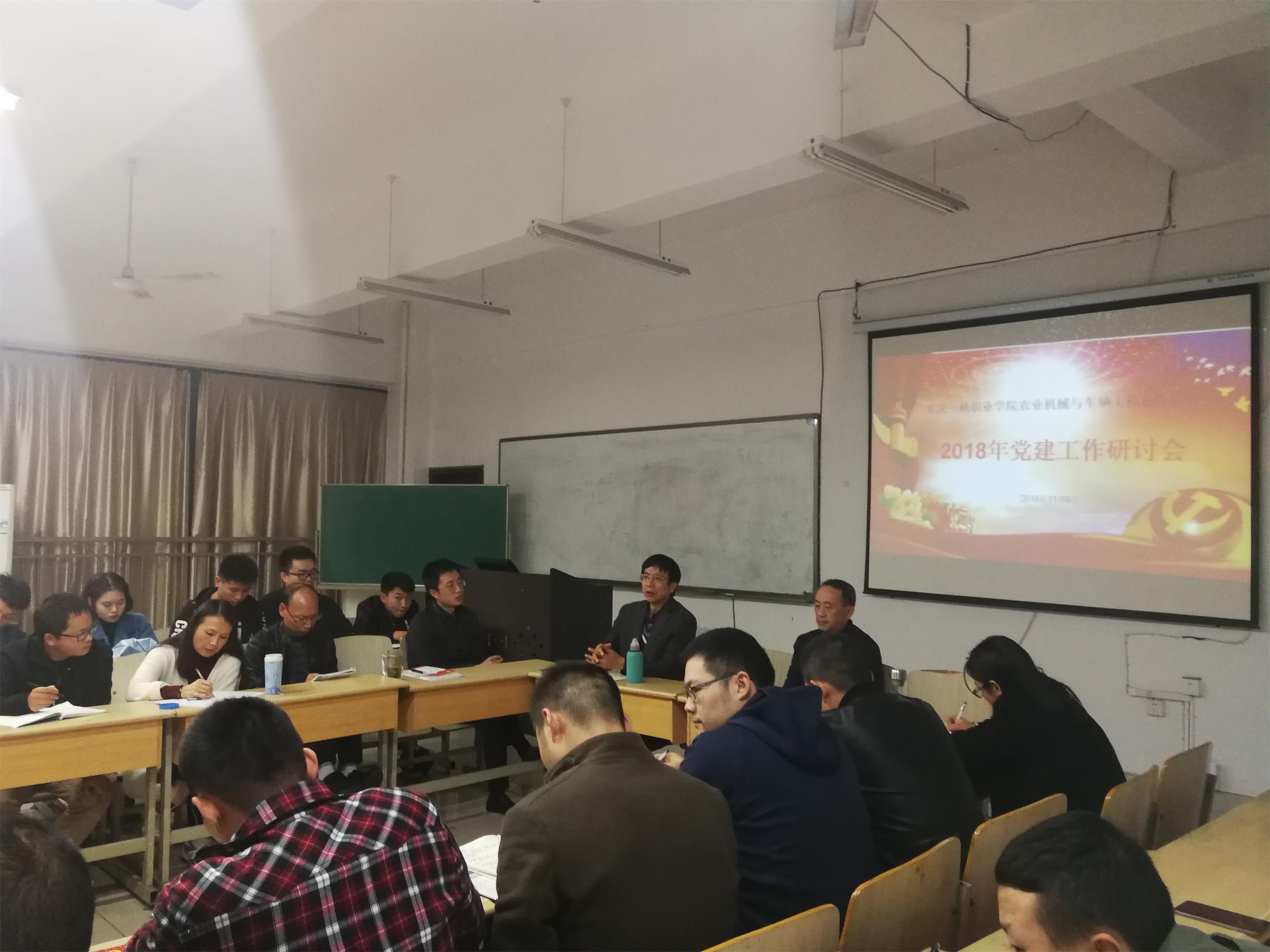 11月6日下午,按照学院统一安排和部署,农业机械与车辆工程系党总支在奥训楼403隆重召开了2018年党建工作研讨会。参加此次研讨会的有学院党委委员、副院长张智,学院党委委员、组织统战部部长杨吉林,以及农业机械与车辆工程系全体党员教师,非党员教师代表,我系部分入党积极分子代表列席了会议。研讨会由农业机械与车辆工程系党总支书记陈小刚主持。