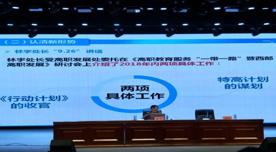 中国职业教育学会常务理事、全国机械职业教育教学指导委员会委员张玲教授应邀作了主题为:“新时代、新职教、新作为—从《行动计划》到《特高计划》”的专题报告。