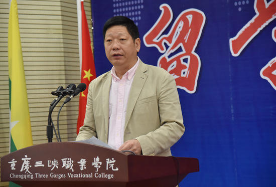 学院副院长杨建宏致词中向同学们介绍了学院的整体概况和近年来取得的办学成果,希望同学们在校期间学好职业技术技能知识,尽早熟悉学习生活环境,用心感受中国传统文化,学好汉语,当好中缅友谊的传播者,成为缅中友好交流的桥梁。