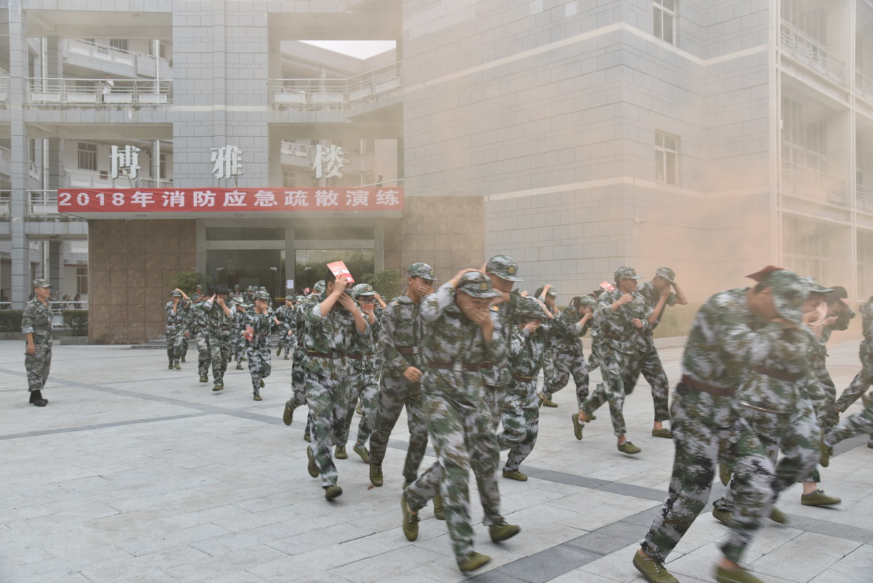 一次应急疏散逃生演练,为新生应对紧急逃生自救积累了经验。同学们在军训教官和辅导员的带领下,用时5分40秒,从博雅楼不同教室快速、有序、安全疏散到运动场。在浓烟滚滚,警笛长鸣的模拟火场中,每个新生都身临其境,体验了火灾逃生感受,提升了应急心理素质,达到了既定的目标与效果。