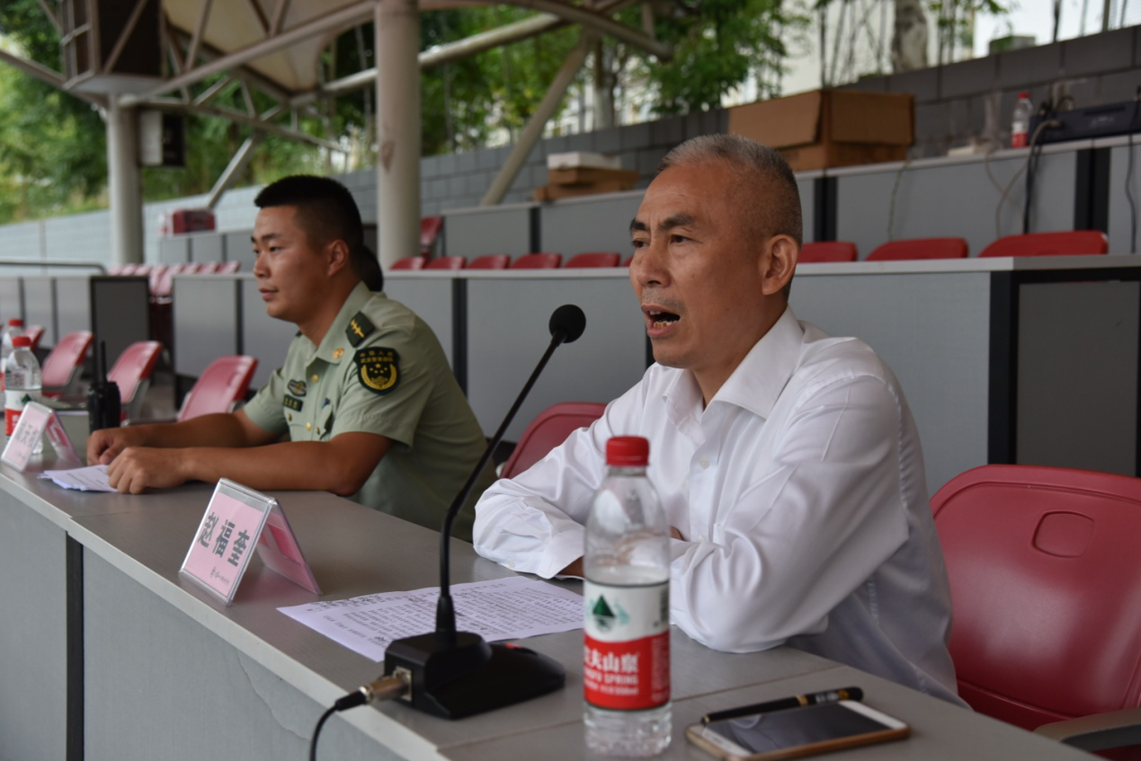 为切实提高2018级新生消防安全意识和自防自救能力,筑起校园消防安全“防火墙”,9月16日下午,我院消防知识进军训系列宣传教育活动在博雅楼及田径运动场陆续上演,掀起了校园安全宣传热。学院副院长赵福奎,学生处处长熊江、各系党总支书记出席活动,活动由安全处处长张美全主持。
