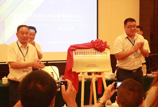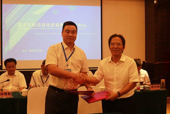 全体会议期间,重庆三峡职业学院与无锡林农软件科技有限公司共同建立的“重庆农机信息化仿真教育研究中心”成立仪式在各与会单位的见证下顺利举行,杨和平院长、无锡林农软件科技有限公司董事长李小卫签订了共建协议;秦大春主任,黄小东处长为中心揭牌;李小卫董事长向我院捐赠价值30万元的农机仿真软件。